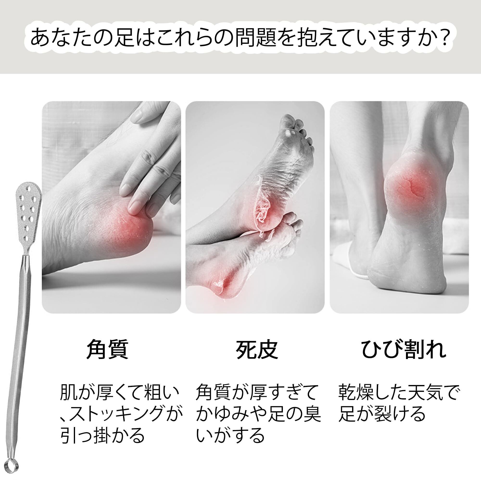 【製品詳細】 角質リムーバーは全体的に優良なステンレス製で、表面が滑らかで非常に丈夫。古い皮膚、角質、固く角質化した皮膚を削る、磨くのもおまかせ。