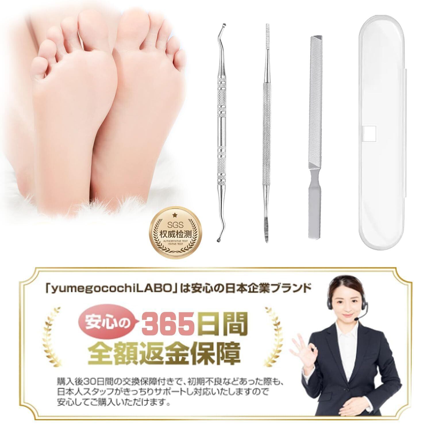 Jesyookaの 爪垢取り&爪ヤスリ3本セット は、指先や足の爪の汚れ除去だけでなく、爪の形を整えるための 爪ヤスリ も付属。巻き爪や厚い爪のケアを自宅で簡単に行えます。