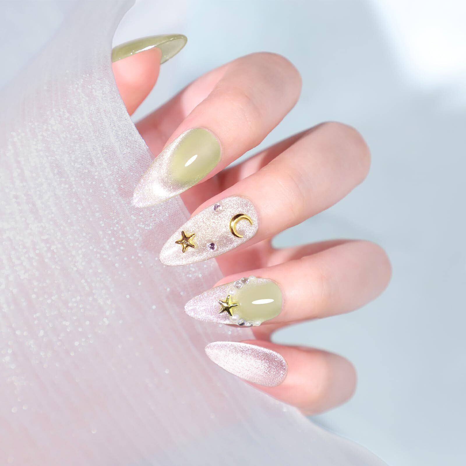 マグネットネイル効果:超微粒子が付きマグネットジェルは発色抜群で、角度によって異なる光沢のネイルアートが見せます。たくさんのネイル効果ができます。例えば、猫目効果、フランスヘール効果、ワイドライン効果、丸い効果。