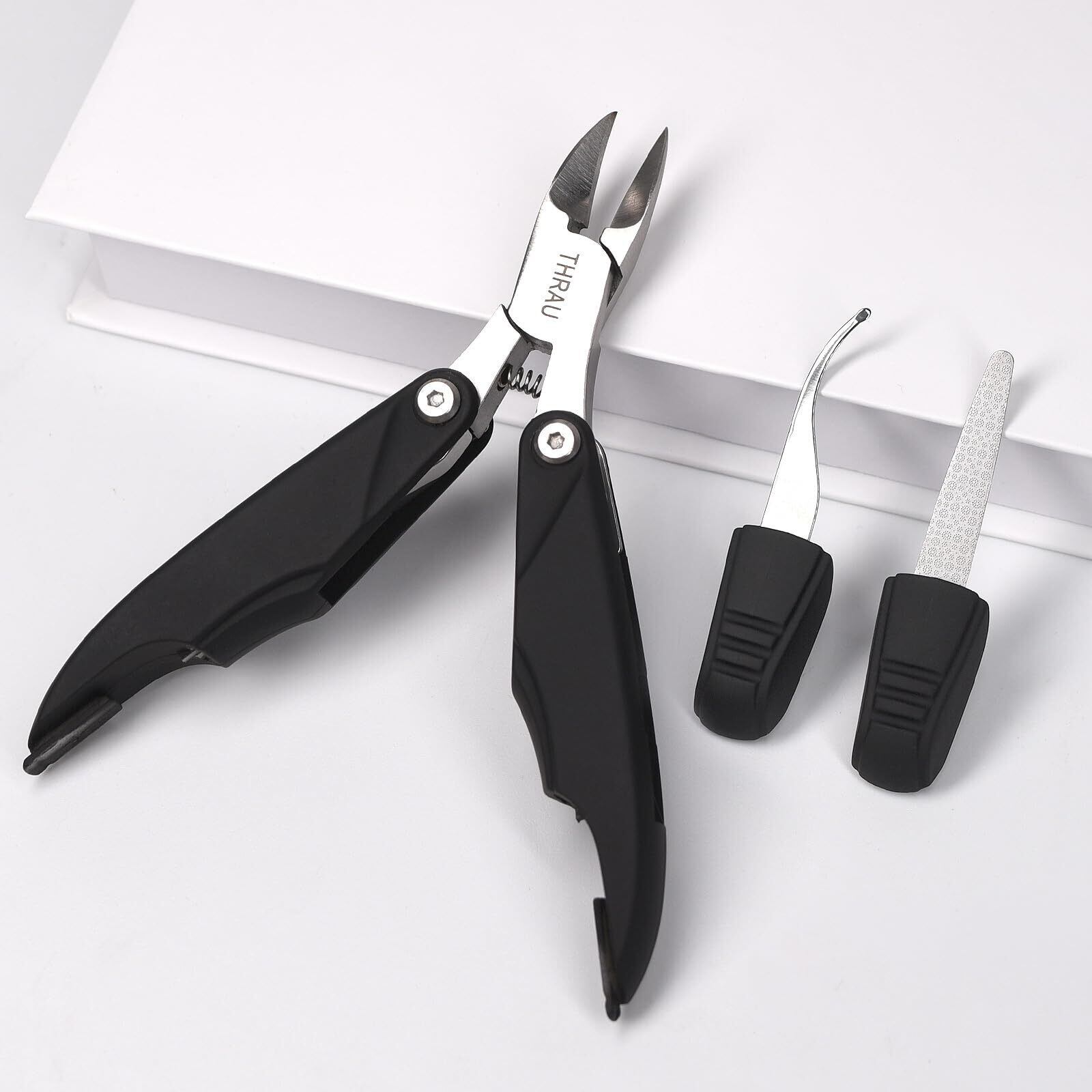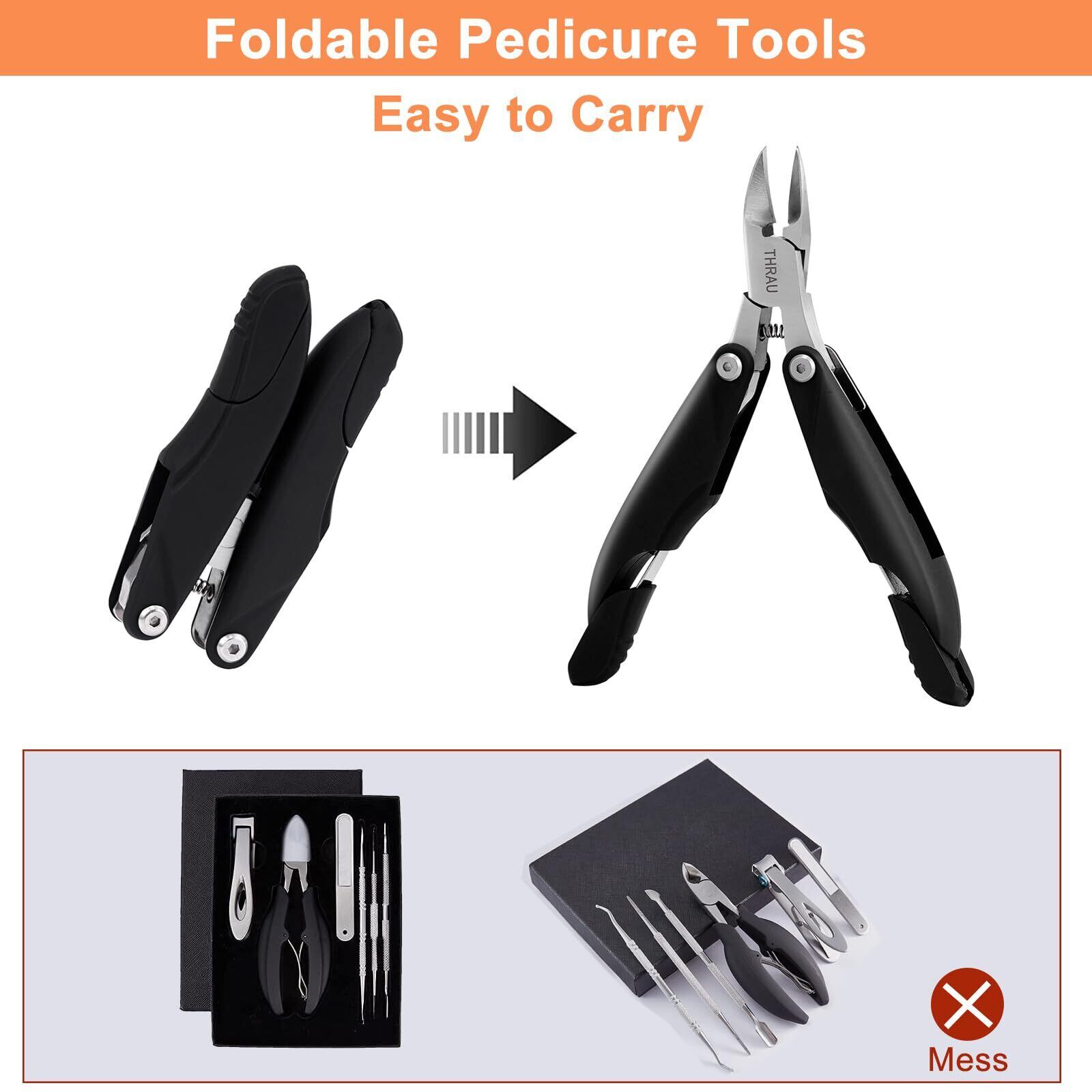 THRAU 足爪切り、3 in 1 折りたたみ式爪切り、ステンレス鋼爪切り、ギフトボックスマニキュアセット