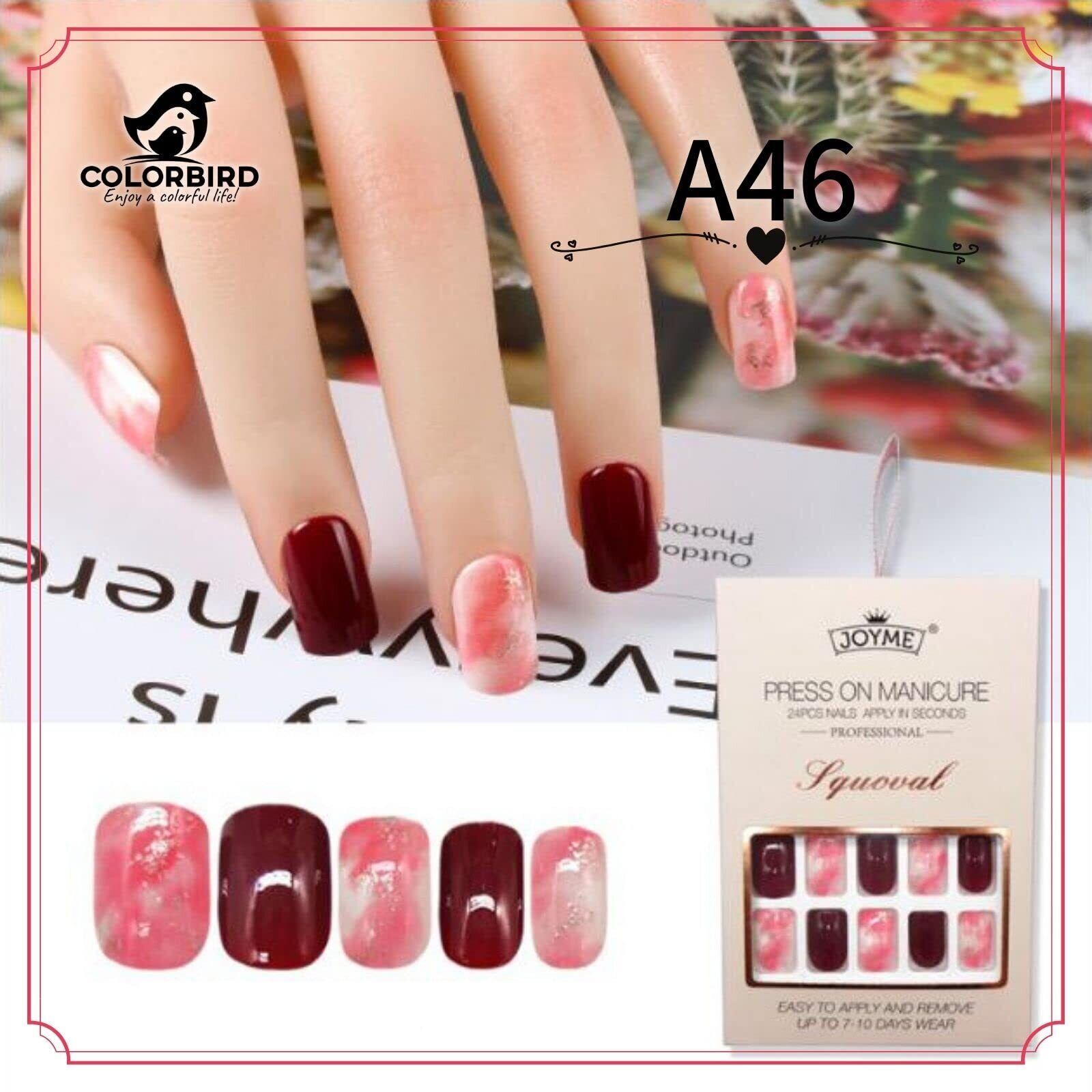 COLORBIRD ネイルチップ JOYME 24 スクエアオフ 24枚 エレガント 母の日 結婚式 マニキュア 大人 可愛い つけ爪 (A46)