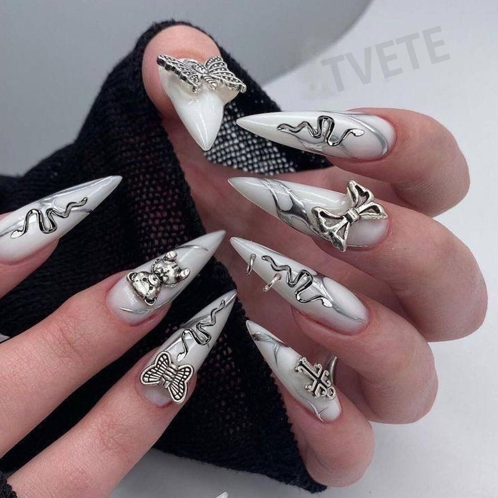 【立体的なヘビ】:ヘビの形をしたネイルアートジュエリーは、小さくて絶妙な立体的な形状が特徴で、合金素材で作られており、質感に満ちています。ゴールドでもシルバーでも、さまざまなネイルカラーと簡単にマッチし、指先のハイライトになります。