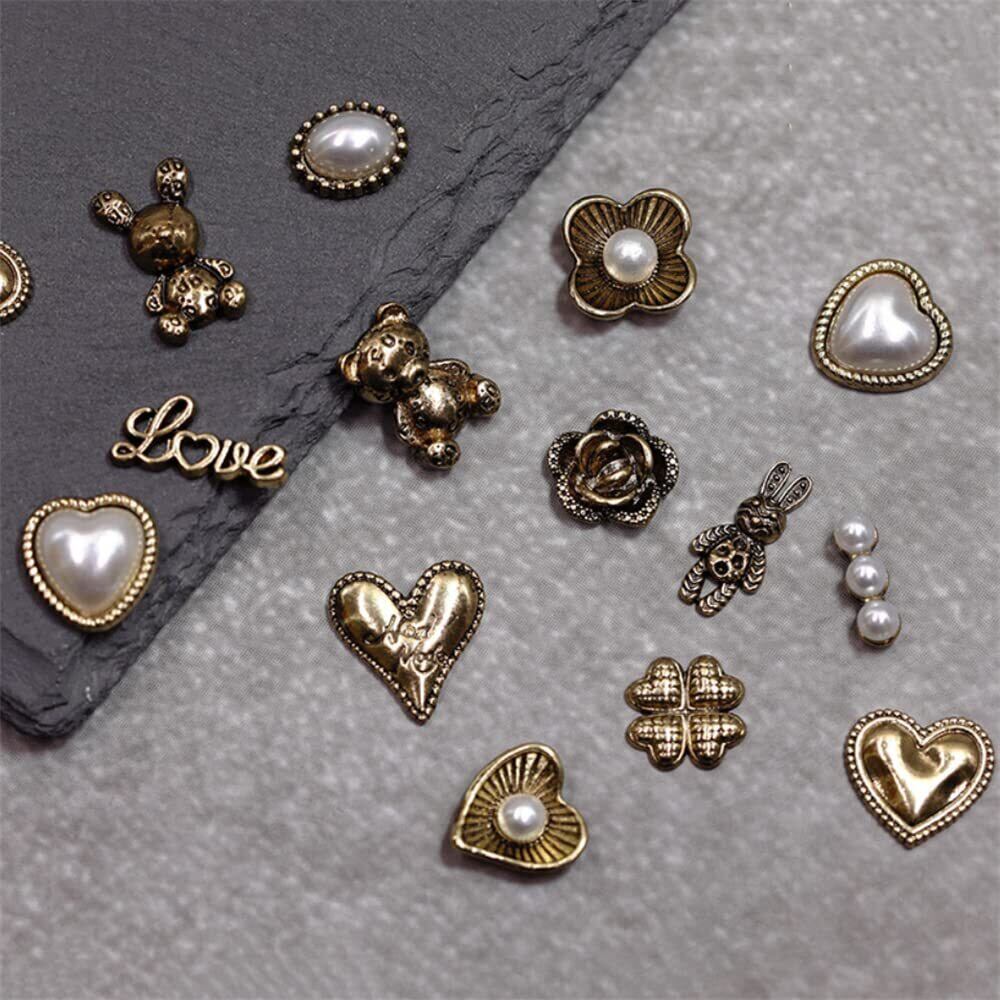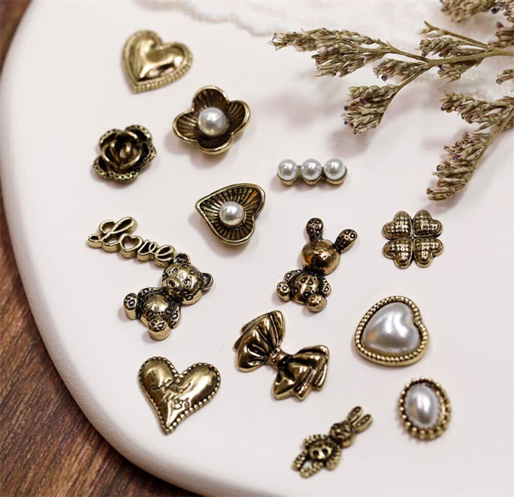 DUOLEIMI ネイルパーツ パール メタルパーツ 3D ネイルデザイン パーツ アクセサリー 合金 リボン レトロ風 18PCS