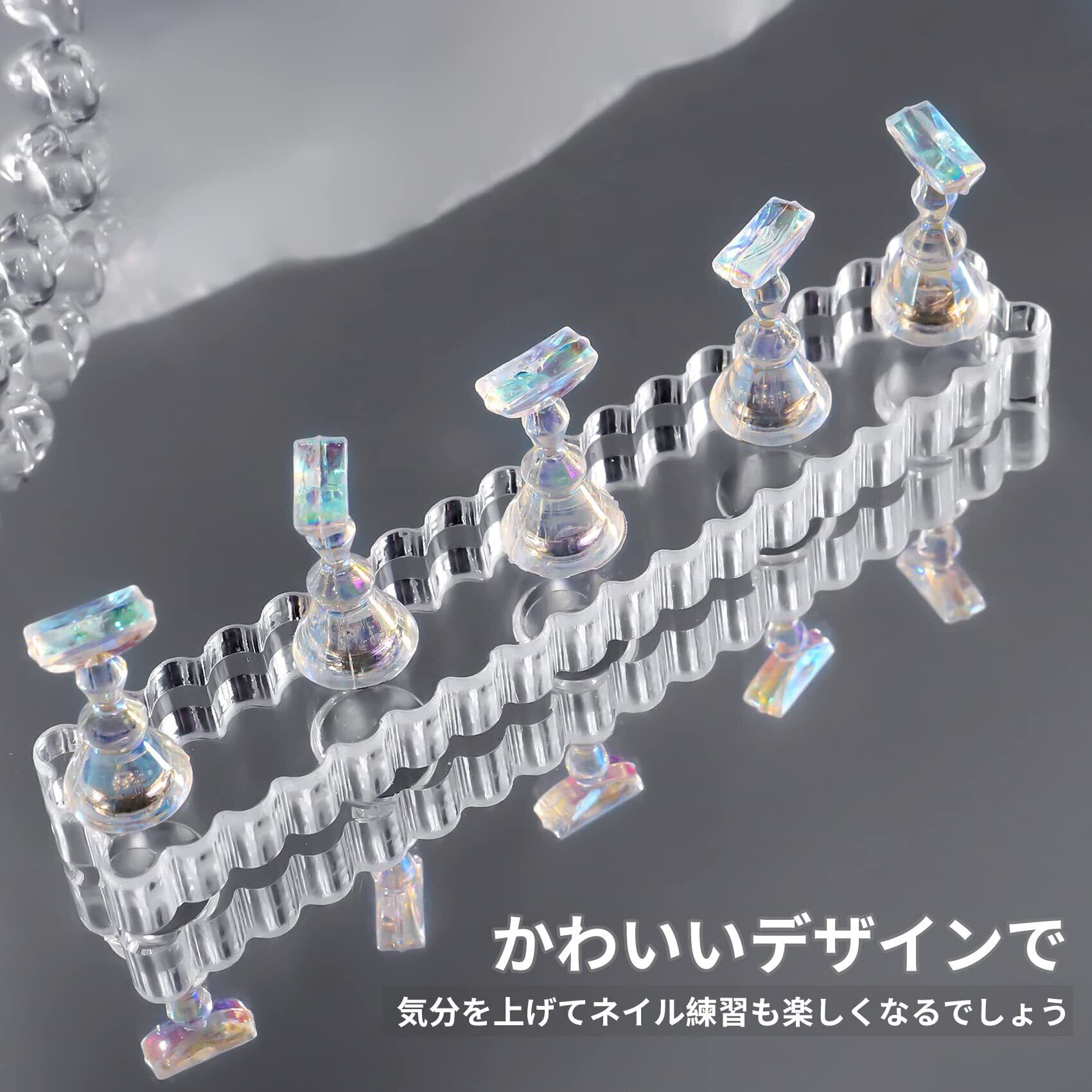 【特価商品】Annhua ネイルスタンド マグネット ネイルチップスタンド 小型 5本 波模様 アクリル製 つけ爪スタンド マニキュア工具 初心者 練習用 クリア オーロラ