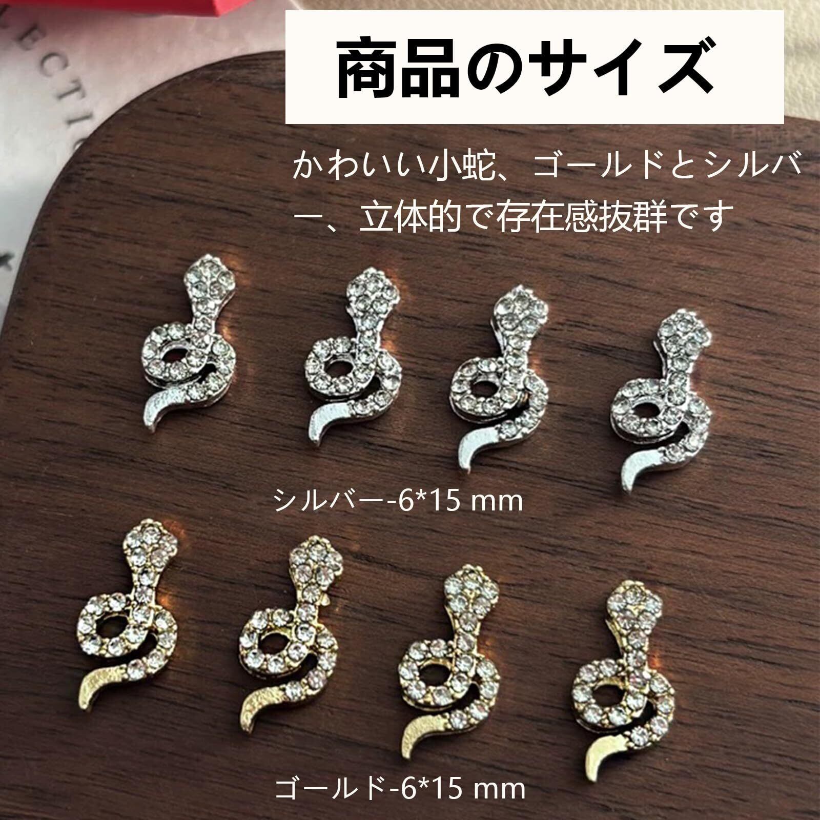 【使いやすい】かわいい小蛇、ゴールドとシルバー、立体的で存在感抜群です。爪に乗せるだけで、ネイルのおしゃれ度がアップ。自宅でも綺麗なネイルを楽しみいただけます。