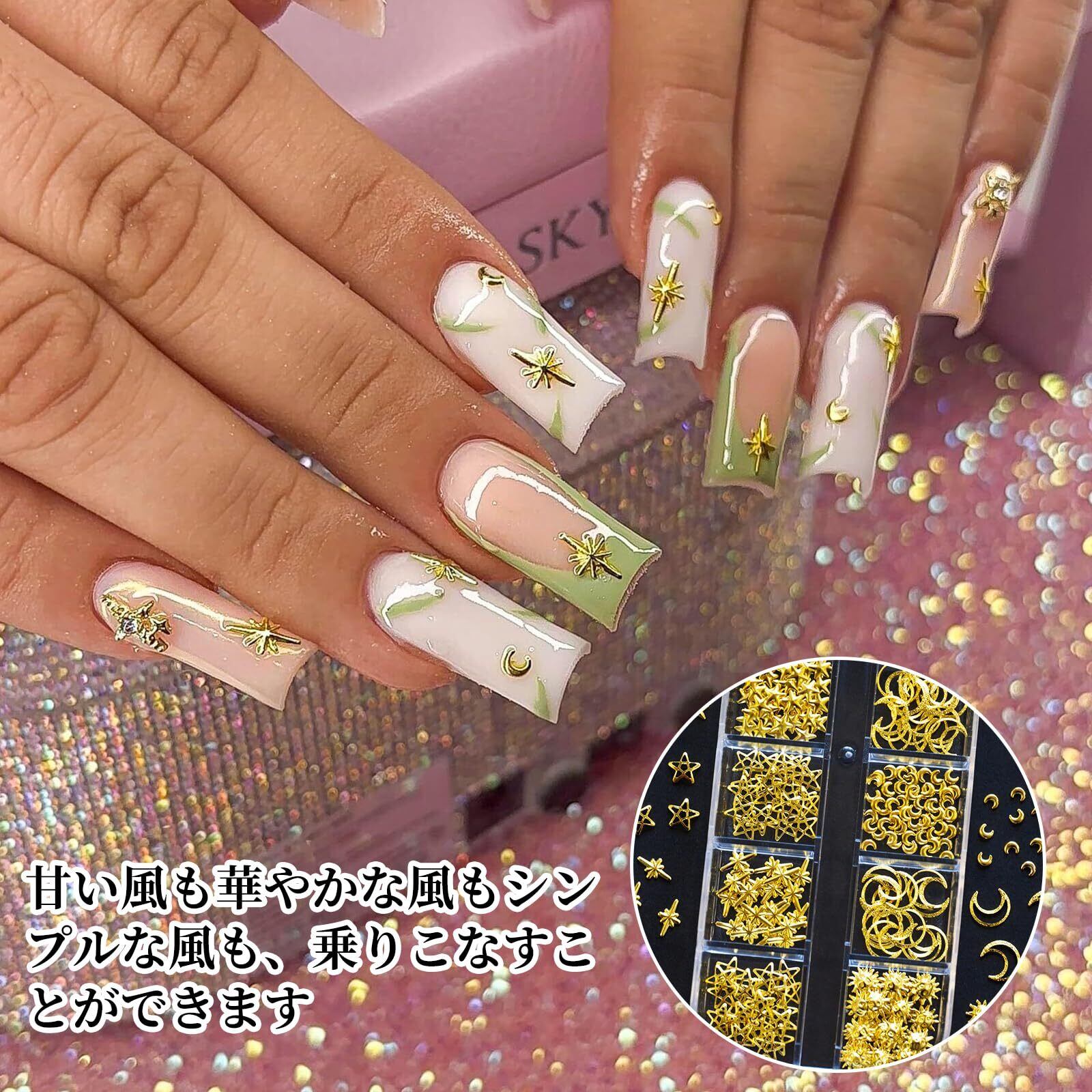 【多様なデザイン】 ネイルパーツセットにはリボン、星、月、ハート、花、クラウンなど多くの装飾要素が含まれており、デザインが豊富で、さまざまなスタイルのネイルニーズを満たすことができます。シンプルな日常風にも華やかなパーティー風にも、手軽に使いこなして爪に独特の輝きをプラスしてくれます。
