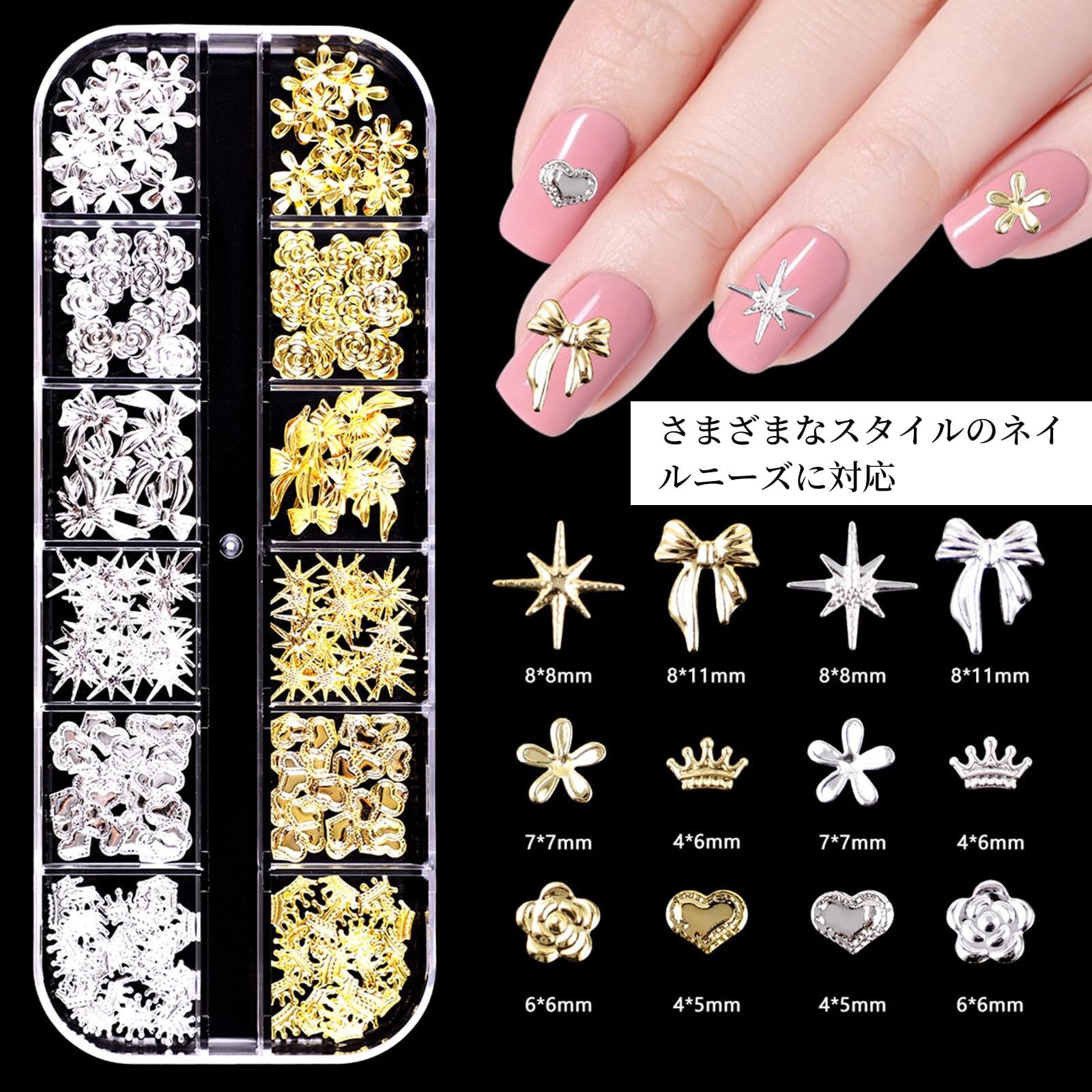 【特価商品】Coollooda ネイルパーツ デコパーツ 2本セット 3D 立体 可愛い スタッズ 星 リボン 月 ハート 花 蝶結び スター 四芒星 王冠 多種類 合金 小さい ネイルストーン ネイルアート パーツ メタル ジェルネイル ジュエリーパーツ ハンドメイド DIY 手芸素材 | Lumisfera