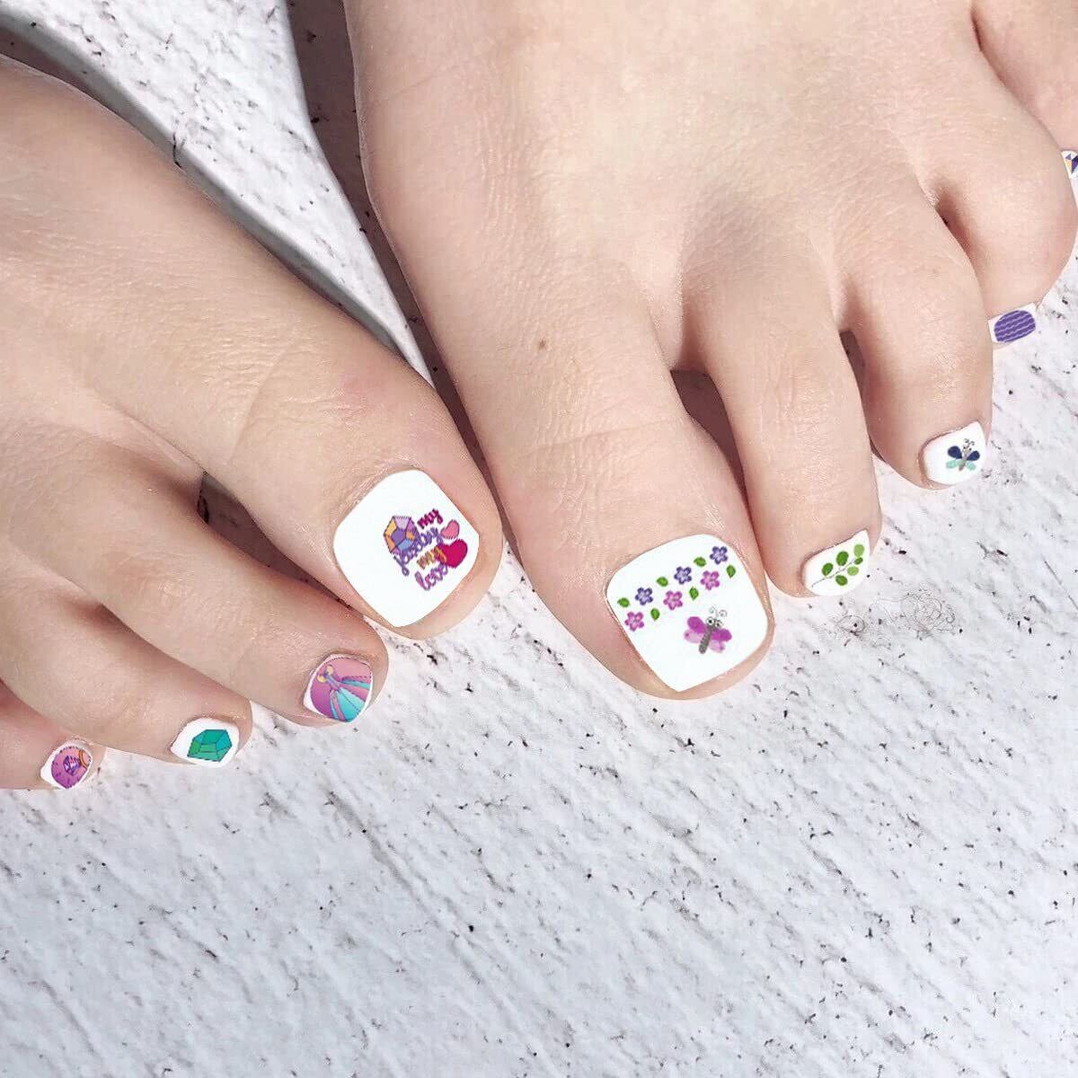使いやすい - 極薄簡易、自己接着タイプで、小さな子供でも自分で塗れます。ご自分の爪の形に合わせてカット、またはヤスリなどで形を整えてください。3~5日間持続します。より良い効果を得るために、上部に透明なネイルジェルの層を追加することができます。注意:円形の部分は爪床に向かって下向きに、平らな部分は爪先に向かって上向きになっています。
