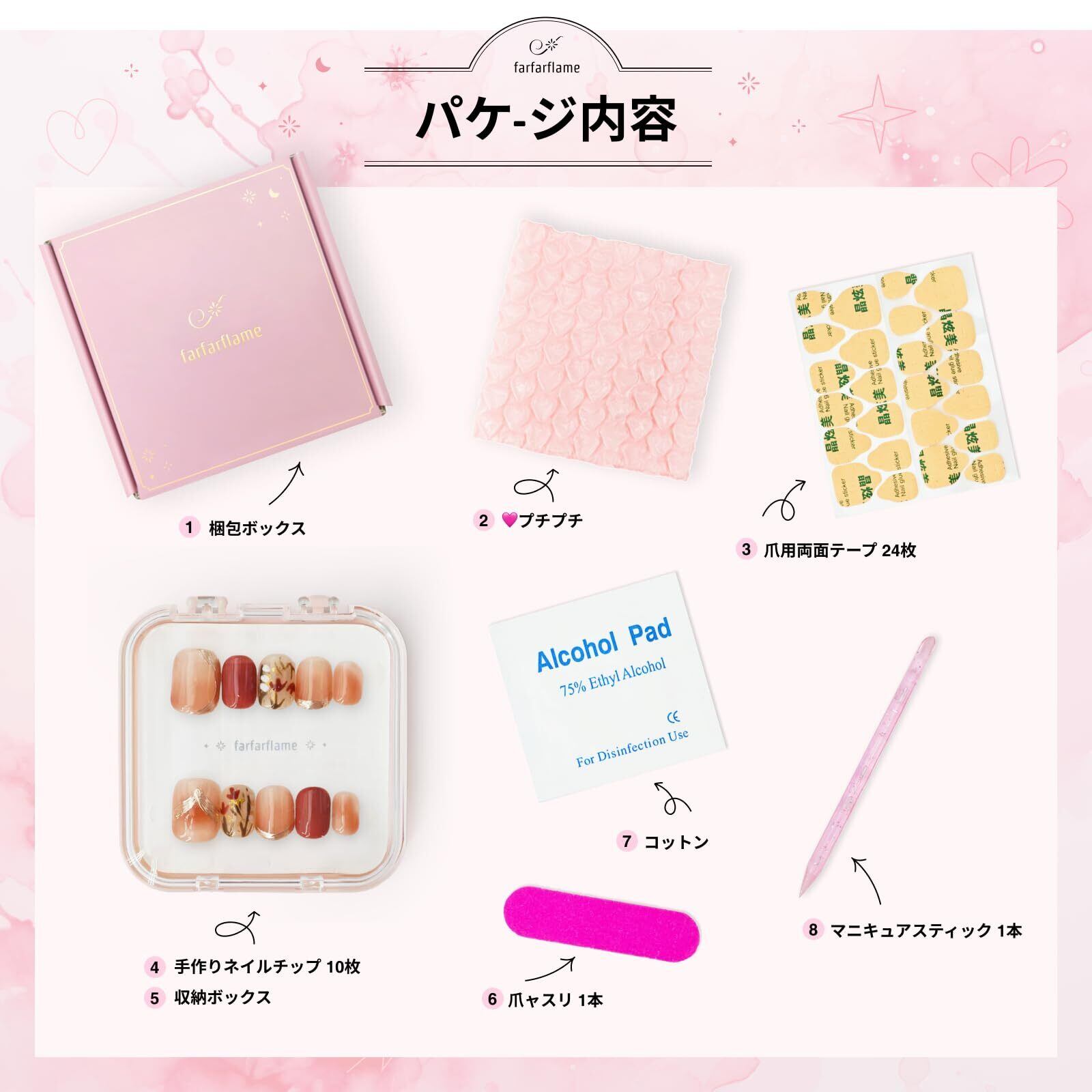 farfarflameの手作りネイルチップは、美しさと便利さを兼ね備えたアイテムです。エレガントなデザインと高級感あふれる品質。ネイルチップは簡単に装着できるため、オフィス、学校、パーティー、ショッピング、自宅でのリラックスタイムなど、忙しい日常生活の中でも、様々な場面でプロフェッショナルで美しいネイルスタイルを楽しむことができます。 熟練のアーティストが作成し、細部までこだわったユニークなデザイン。ネイルサロンと同じ高品質な材料を使用し、抜群なネイルチップを丁寧な加工し、あなたをもって魅力的にさせます。
