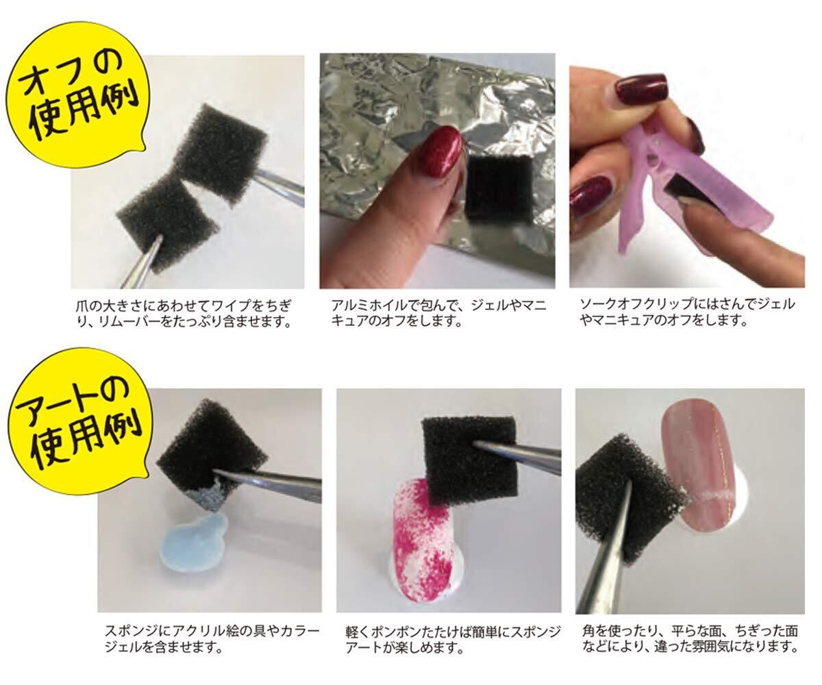 ジェルクリーナーを含ませ未硬化ジェルを拭き取ったり、ソークオフリムーバーを含ませジェルやアクリル・ポリッシュのオフにお使い頂けます。