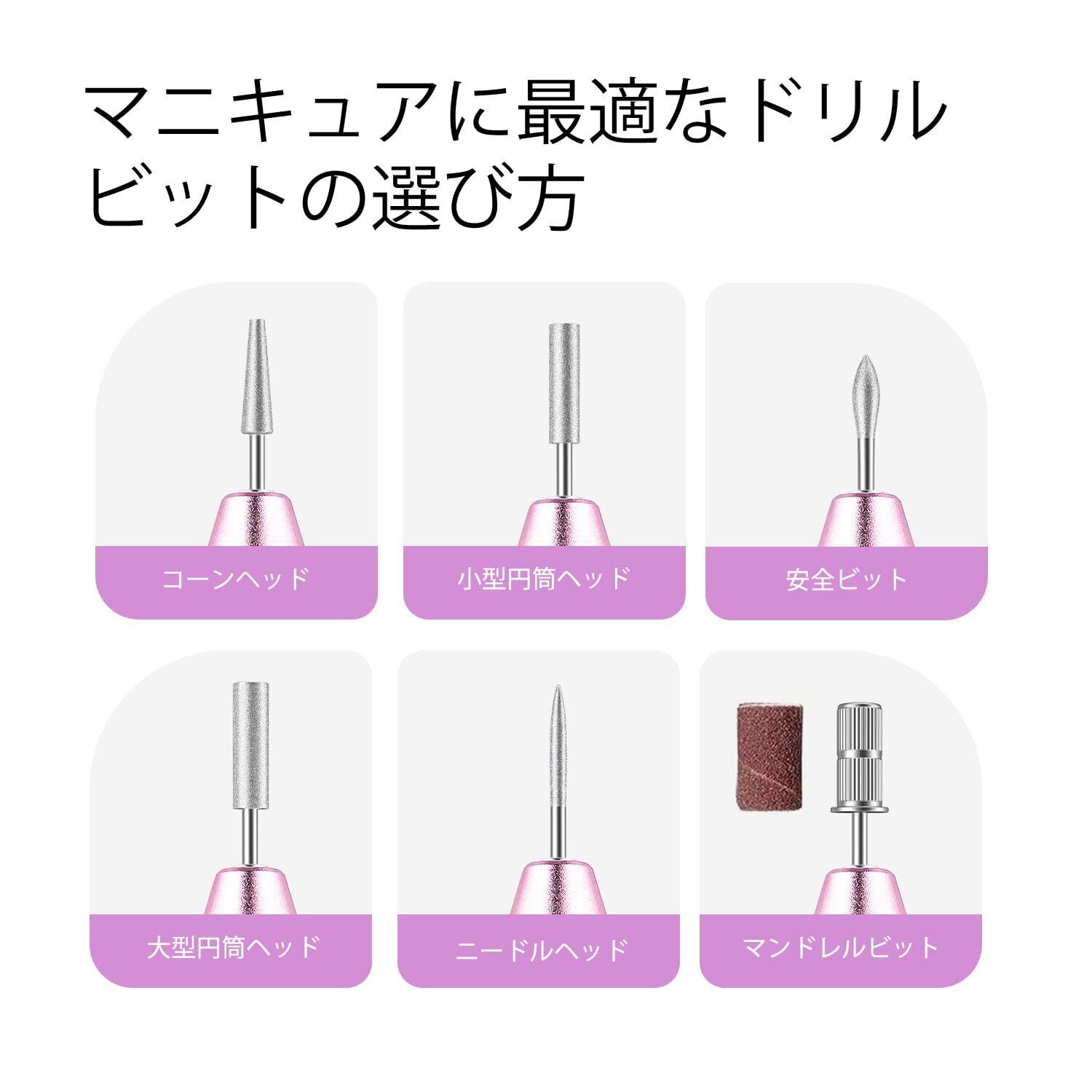製品について:この電動ネイルドリルは、繊細で軽量なデザインで持ち運びやすく、6種類のプロ仕様の交換用ドリルが付属しており、あらゆるジェルネイル除去をニーズに合わせて行うことができます。