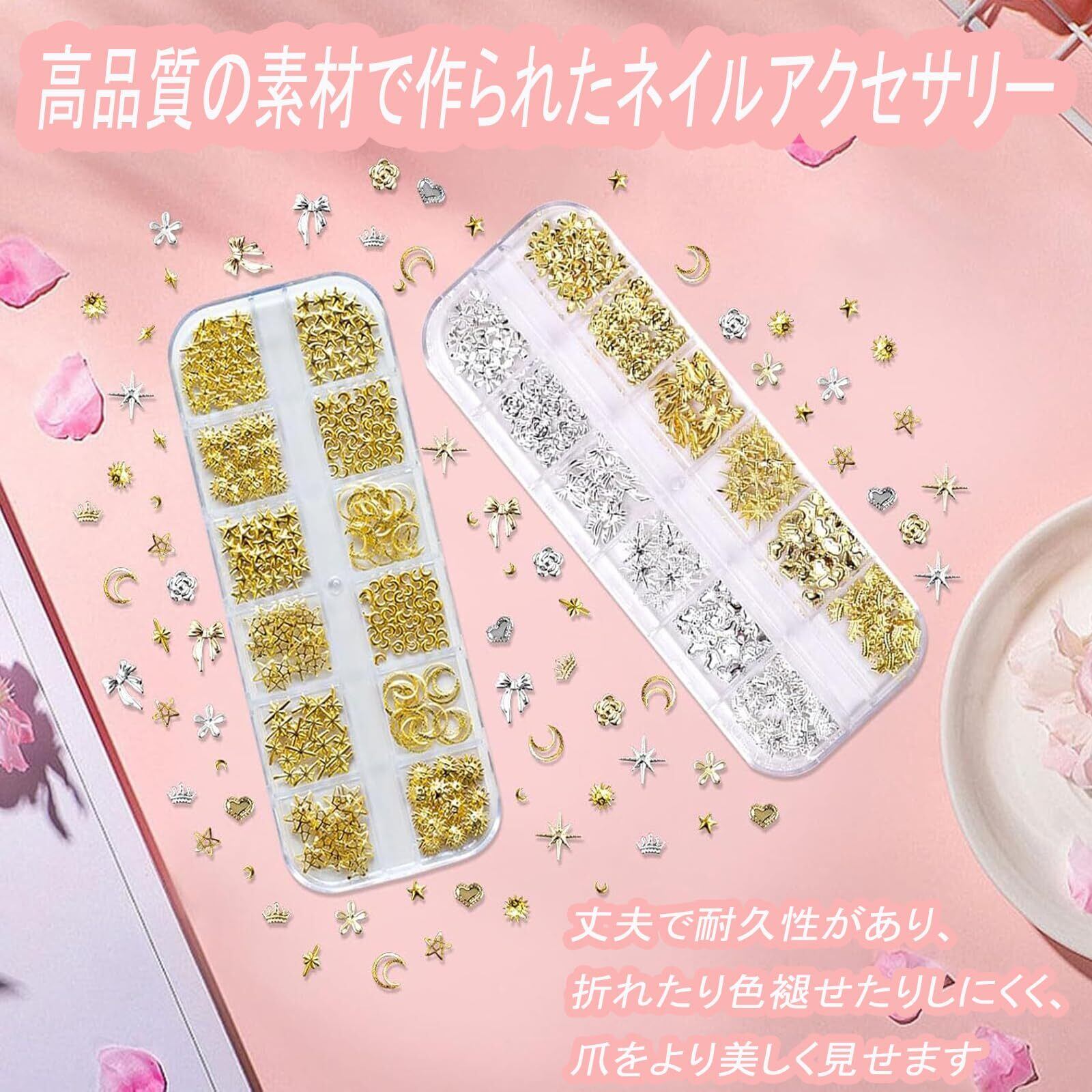 【人気商品】ネイルパーツ 2ケース スタッズ 金属パーツ 星 月 リボン ネイルパーツ スタッズ スター ムーン 蝶結び メタルパーツ ジェルネイル パーツ ネイルアート デコパーツ ゴールド シルバー ネイルアート DIY 手作 | Lumisfera
