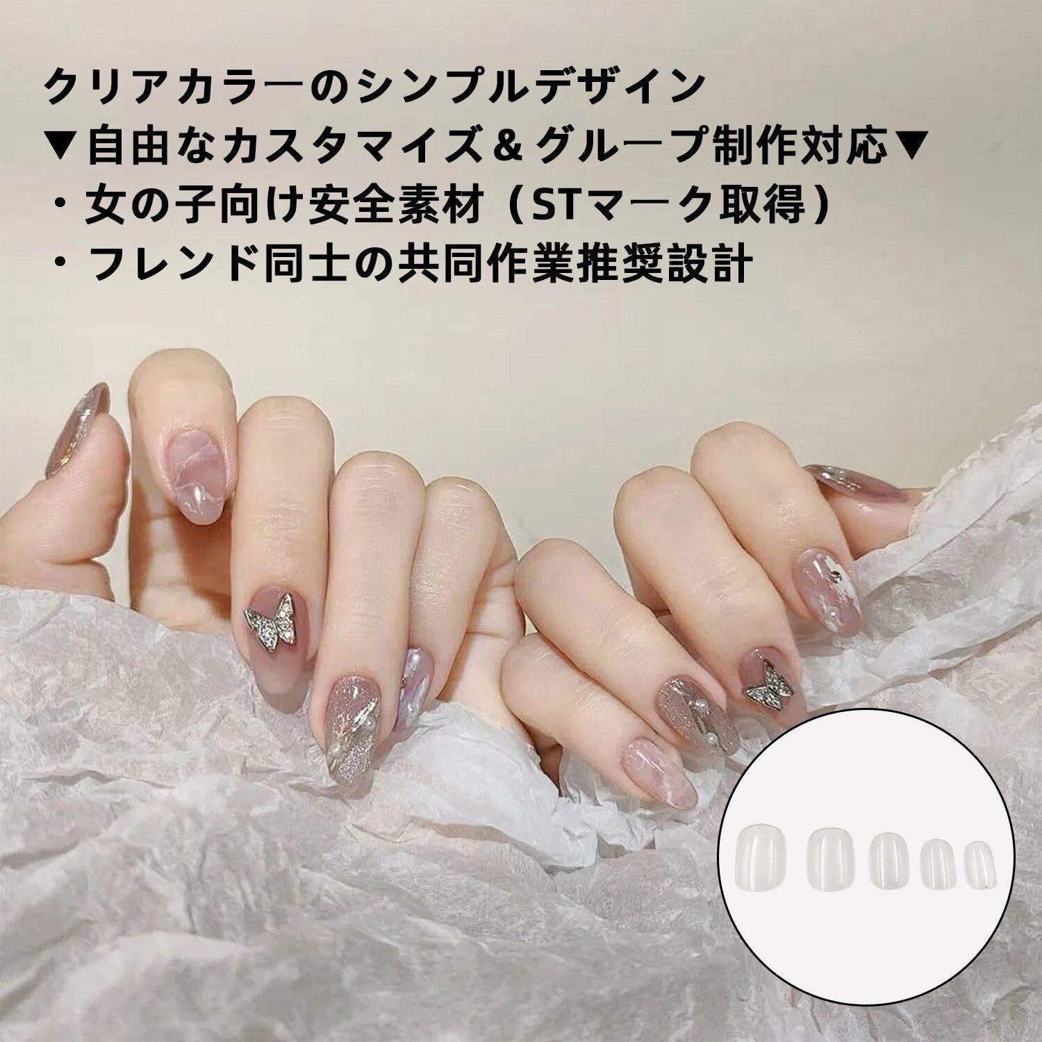 【小さな手専用設計】短く薄い透明ベースが特徴で、未就学児から学童までフィット。爪が小さいお子様でも簡単に装着でき、自由に長さや形をカスタマイズ可能。