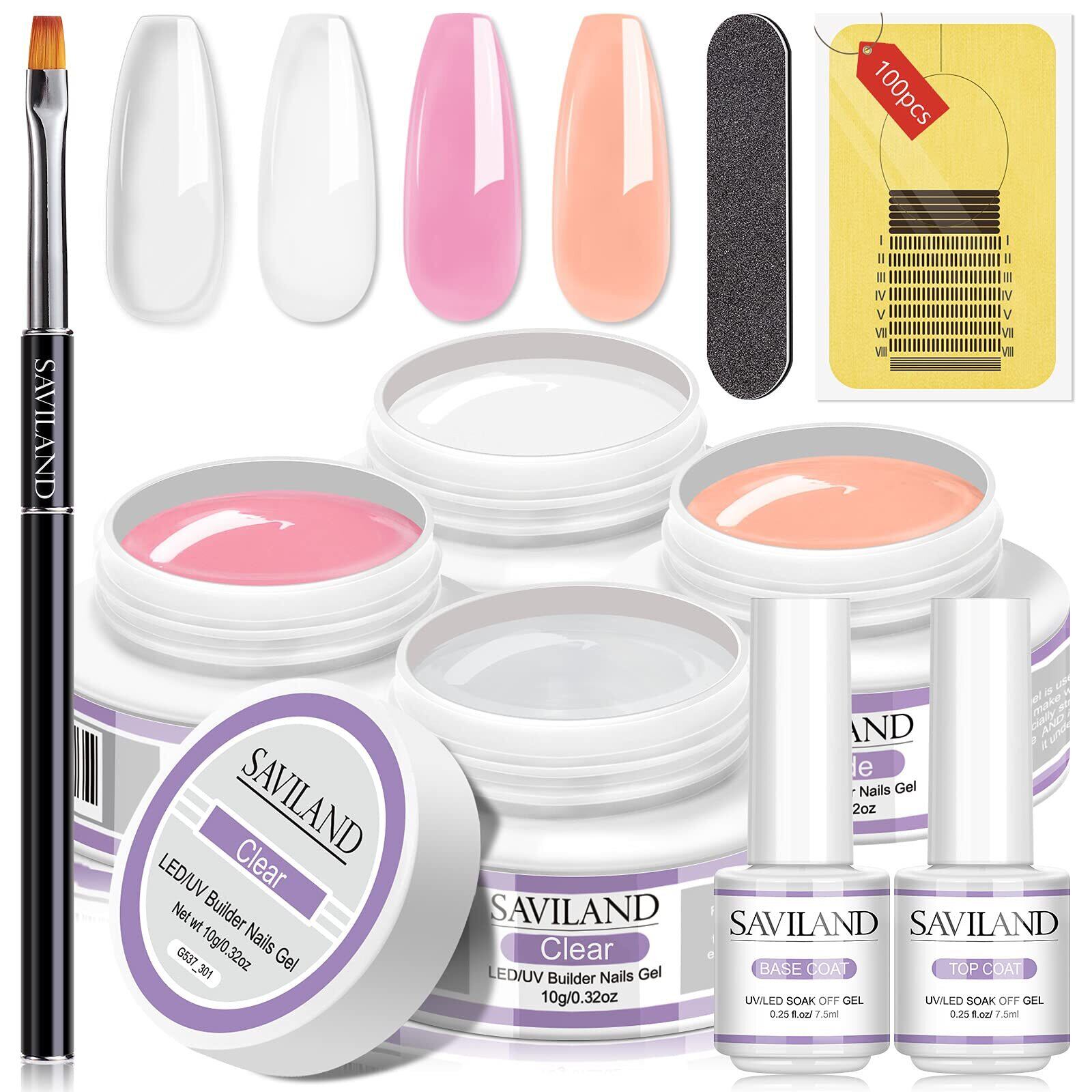Saviland クリアジェルキット 4色 ネイル長さだし 100PCSネイルフォーム付き ビルダージェル ネイルリペア ハードジェル 初心者向け ピンク