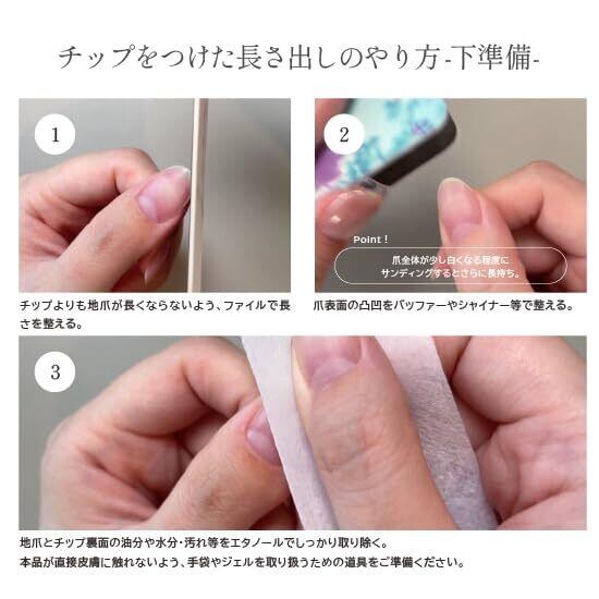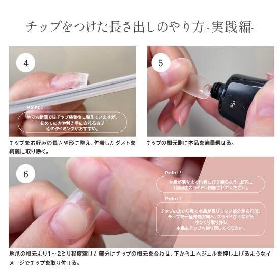 <ご使用上の注意> ●爪に塗布する以外の目的でご使用にならないで下さい。 ●お肌に異常のある方や、アレルギーのある方はご使用にならないで下さい。 ●ご使用中に異常を感じた場合は、すぐにご使用をやめ、専門医へご相談下さい。 ●ご使用中は蓋を開けたままにせず、ジェルライトや照明等が当たらないようご注意下さい。 ●ペットや小さなお子様の手の届かない場所に保管して下さい。 ●高温多湿や極端に低温な場所を避け、光が当たらない場所に立てた状態で保管して下さい。 ●開封後はお早めに使い切ってください。 ※クリアベースのチップの場合には、密着度が高くなりすぎるため、ピールオフベースジェルのご使用を推奨いたします。 ※ベースカラーが濃い場合は、硬化時間「LEDライト/約120秒、UVライト/約240秒」と長めに硬化し、爪周りがしっかり密着しているかご確認ください。