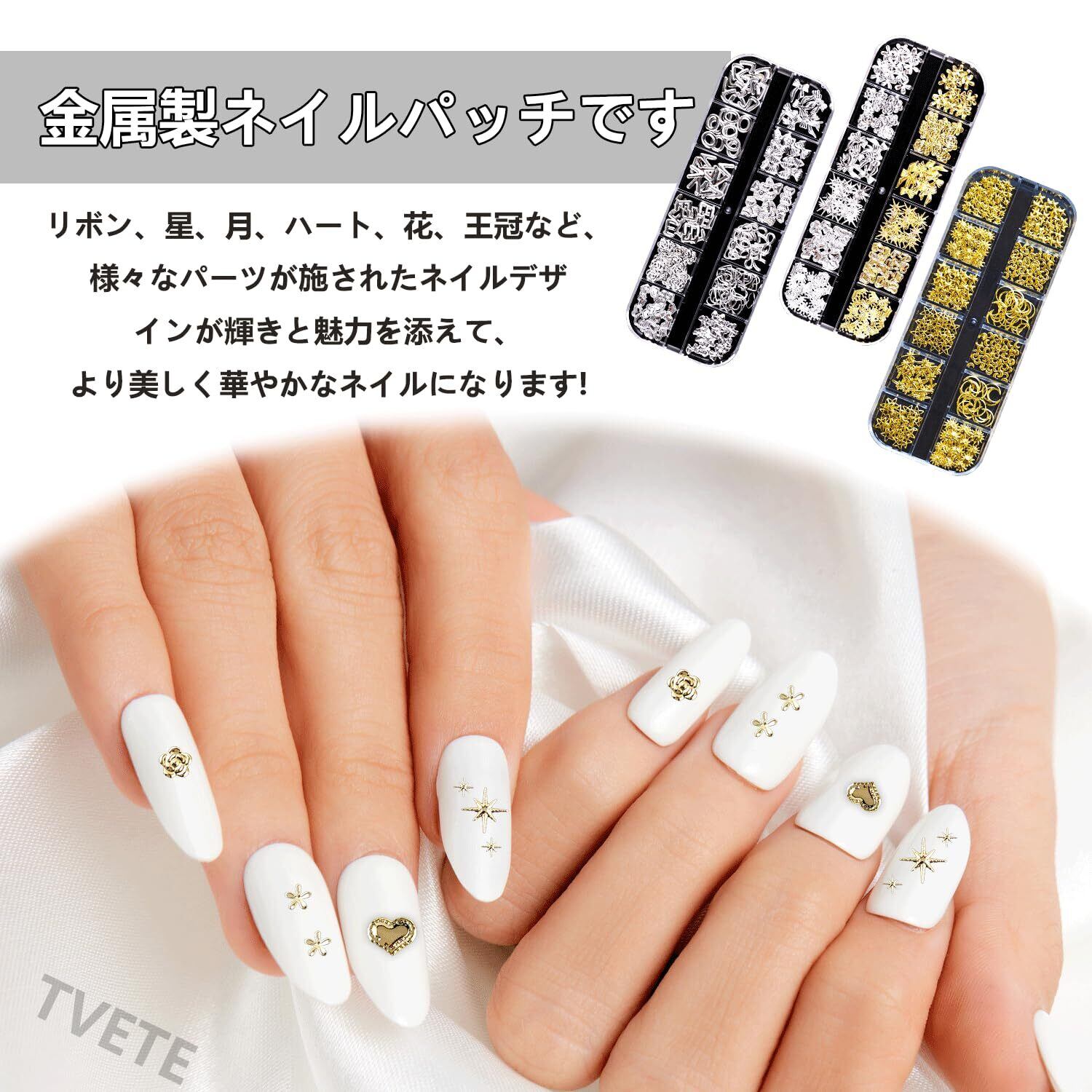 TVETE ネイルパーツ スタッズ 金属パーツ ネイルスタッズ ネイルパーツ シルバー ゴールド【3本セット】3Dネイルアクセサリー ネイルアート装飾アクセサリー DIYハンドクラフト 手作りの装飾アクセサリー 収納ボックス付き