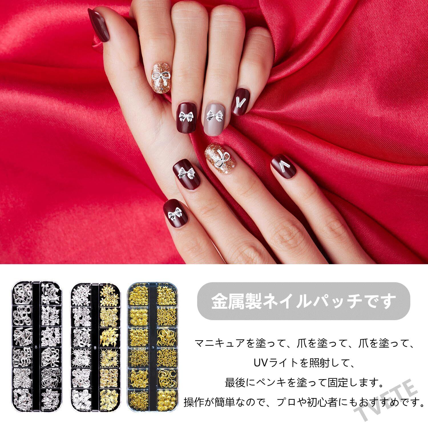 【在庫セール】TVETE ネイルパーツ スタッズ 金属パーツ ネイルスタッズ ネイルパーツ シルバー ゴールド【3本セット】3Dネイルアクセサリー ネイルアート装飾アクセサリー DIYハンドクラフト 手作りの装飾アクセサリー 収納ボックス付き | Lumisfera