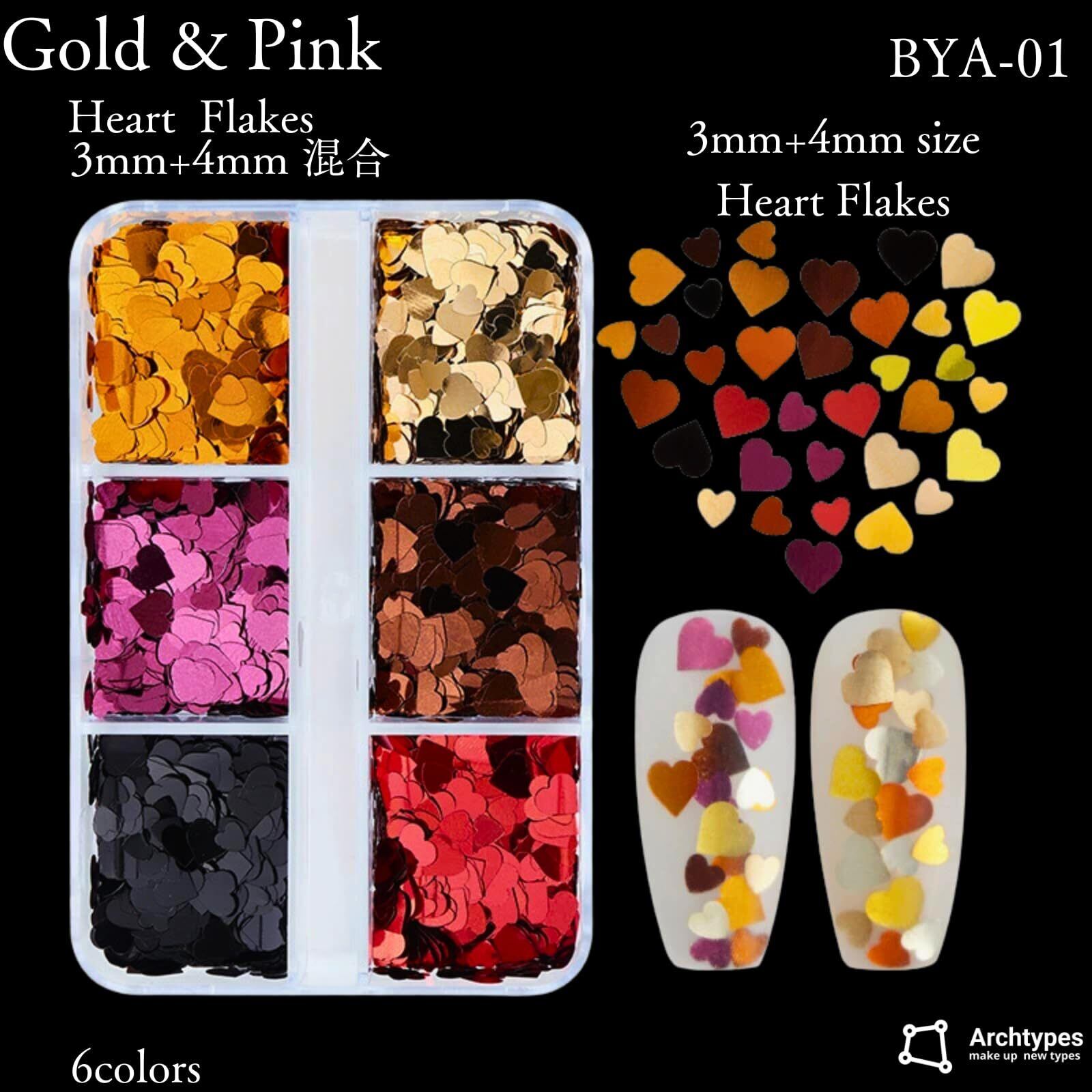 Archtypes ハート ホログラム ネイル ハートホロ ハートホロ ホログラム ネイルパーツ 6色 サイズ混合 GOLD PINK (BYA-01)