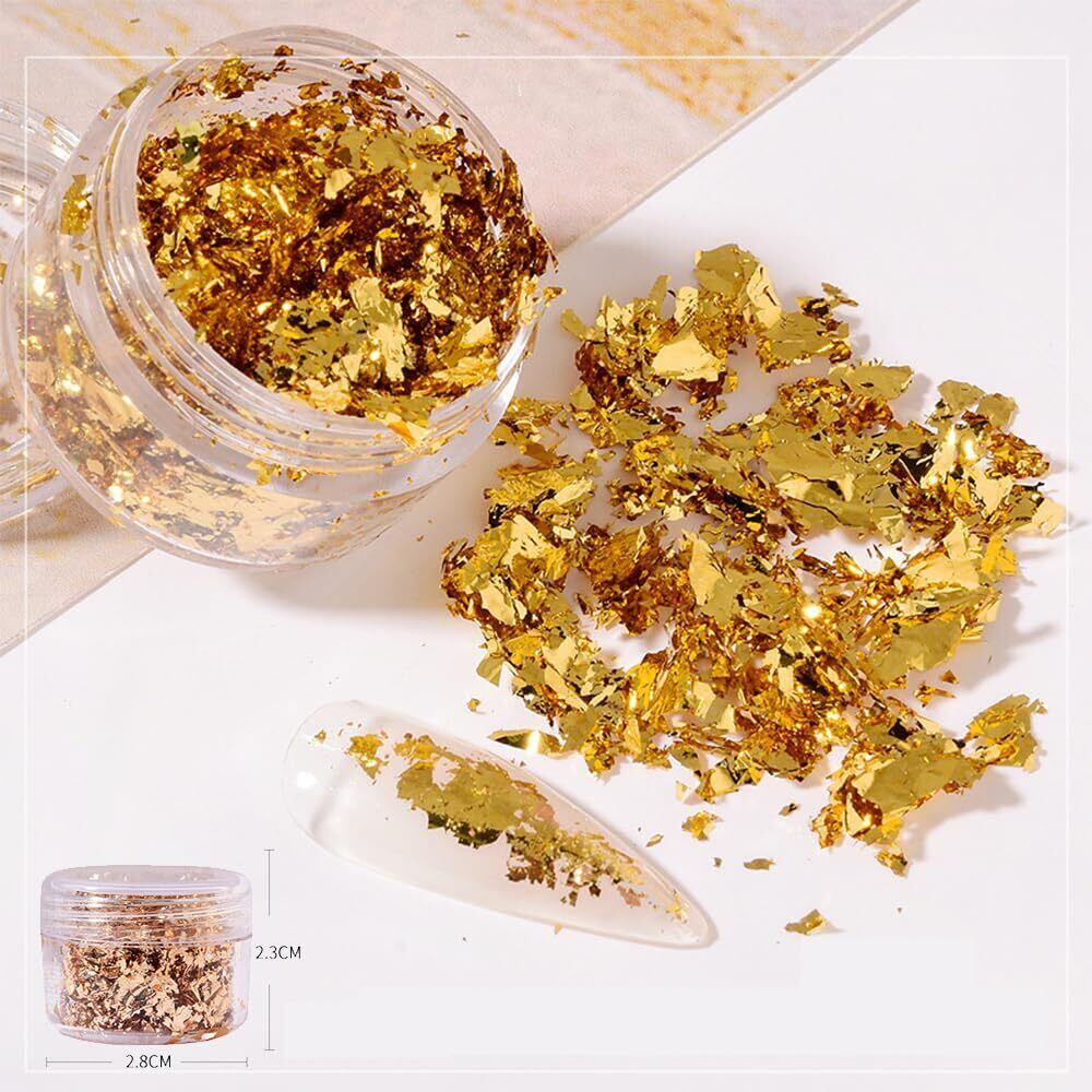 【高度な品質】私たちの金箔フレーク は色あせにくく、酸化しにくい。私たちの金箔はキラキラしたレーザー効果を生み出します。それらはすべて鮮やかな色で、鮮やかな色はあなたの工芸品に驚嘆させるキラキラしたテクスチャ効果を創造させて、あなたの家具と工芸品をキラキラと幻想的で華やかに見せます