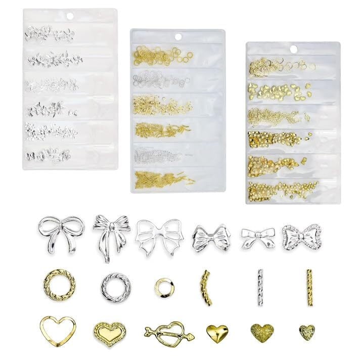 【新春セール】TVETE イルパーツ スタッズ 金属パーツ ネイルスタッズ ネイルパーツ シルバー ゴールド 【3点セット】3Dネイルパーツ ネイルアート装飾アクセサリー ラブハート リボン 金属製のアクセサリー ネイルアートアクセサリー DIYクラフト ゴールド シルバー | Lumisfera