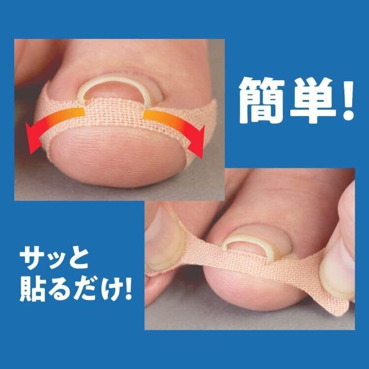 巻き爪テープ「クイこまーぬ」はテープを貼るだけの簡単巻き爪ケア。爪が食い込んでいる部分にテープを差し込んで貼るだけ。爪の圧迫部分が押し下げられてラクになります。