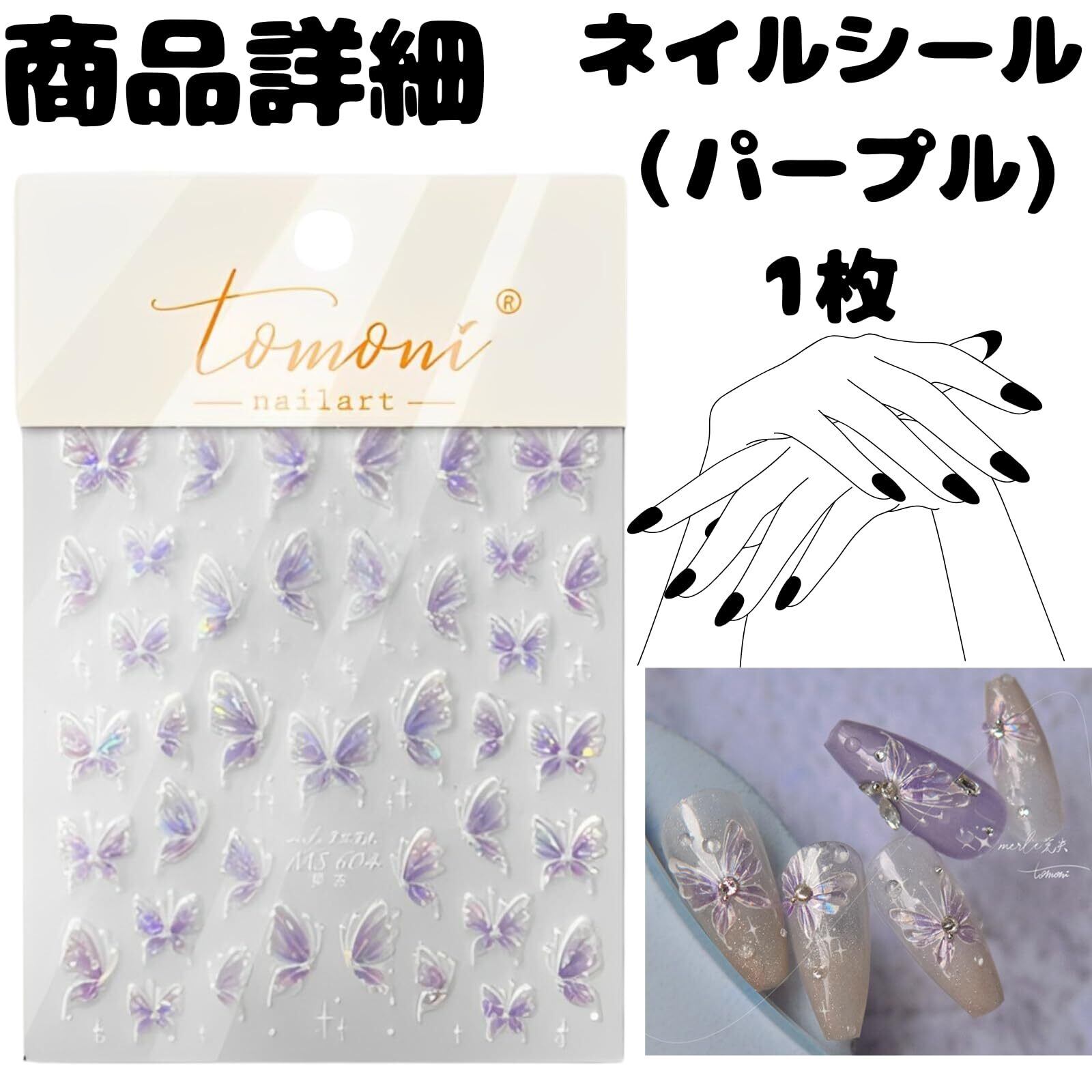 profit.relaxed ネイルシール ネイルステッカー キャラクター 蝶 1枚 (パープル(1枚))