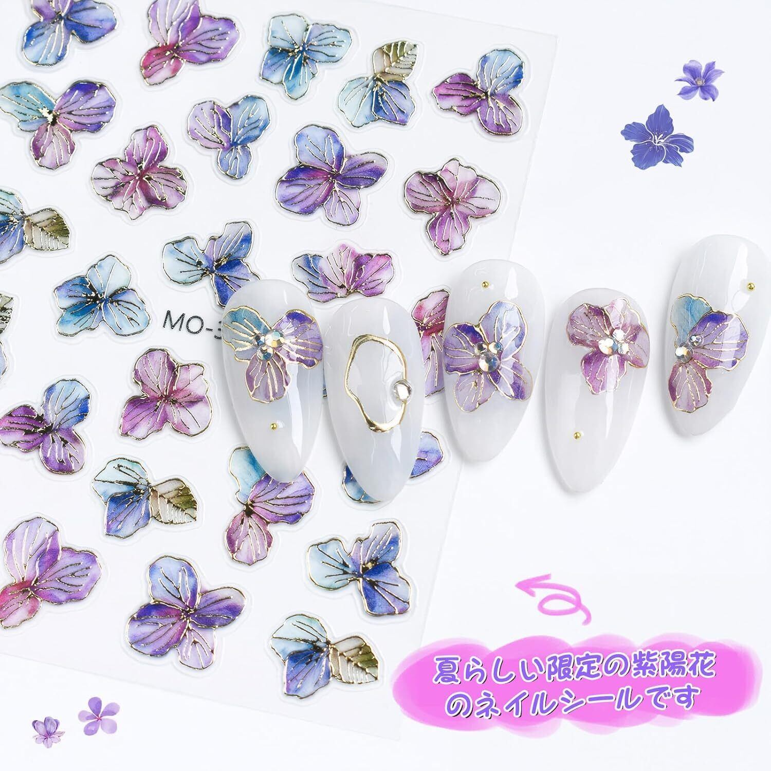 Chisafly ネイルシール 花 アジサイ ネイルステッカー 紫陽花 箔押し 花びら 花柄 梅雨 夏 春 DIY 2枚セット