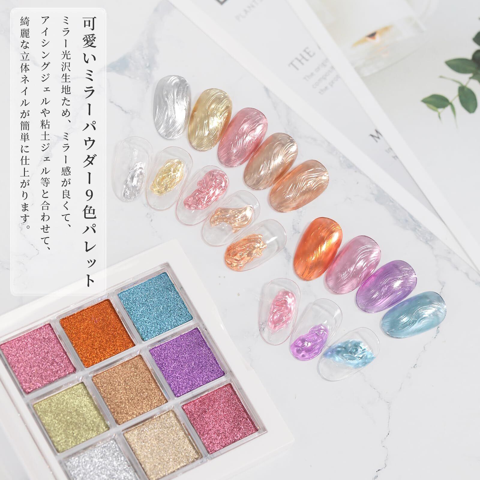 【粉が舞わず】飛び散りにくいタイプグラデーションアートはもちろん、ミラーネイルアートにも使い勝手が抜群で、自分だけのオリジナルカラーが作れます。
