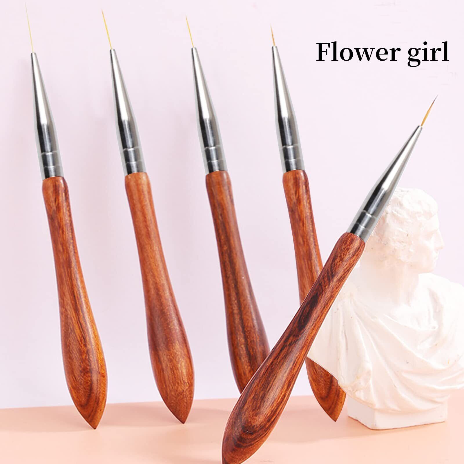 【極細ネイルブラシ】ネイルアートに欠かせないアートライナーブラシのセットです。線を引く時や細かいアートを描く時に最適です。このセットで様々なアートが楽しめます。 【素材】高品質のナイロン毛でできており、程よい硬さがあって塗りやすい。木製グリップは質感があって持ちやすい。 【サイズ】毛丈:0.6cm、0.9cm、1.2cm、1.8cm、2.4cm 通常のサイズから珍しいロングタイプのライナーブラシが揃っています。極細タイプなのでごく細いラインが描きやすい。 【おしゃれな見た目】色が落ち着いてナチュラルな雰囲気を演出します。ハンドルは持ちやすい設計で手にフィットします。 【セット内容】ライナー筆5本入っています。セルフネイルからプロの方まで、幅広くお使いいただけます。自宅でもライン、フラワー、レース、マーブル模様を綺麗に描くことができます。