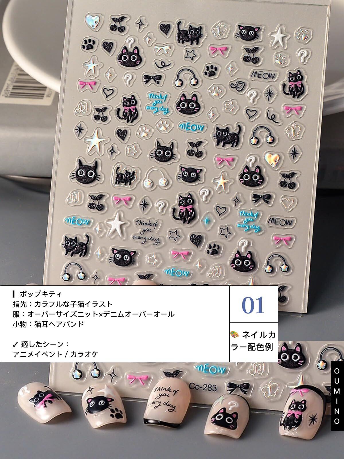 【特価セール】Oumino ネイルシール 3D 猫ネイルステッカー 2枚+10デザイン かわいい・ゴシック・クール猫 立体デコ スマホケース/AirPods装飾可能 はがせる おしゃれ セルフネイル 簡単 | Lumisfera