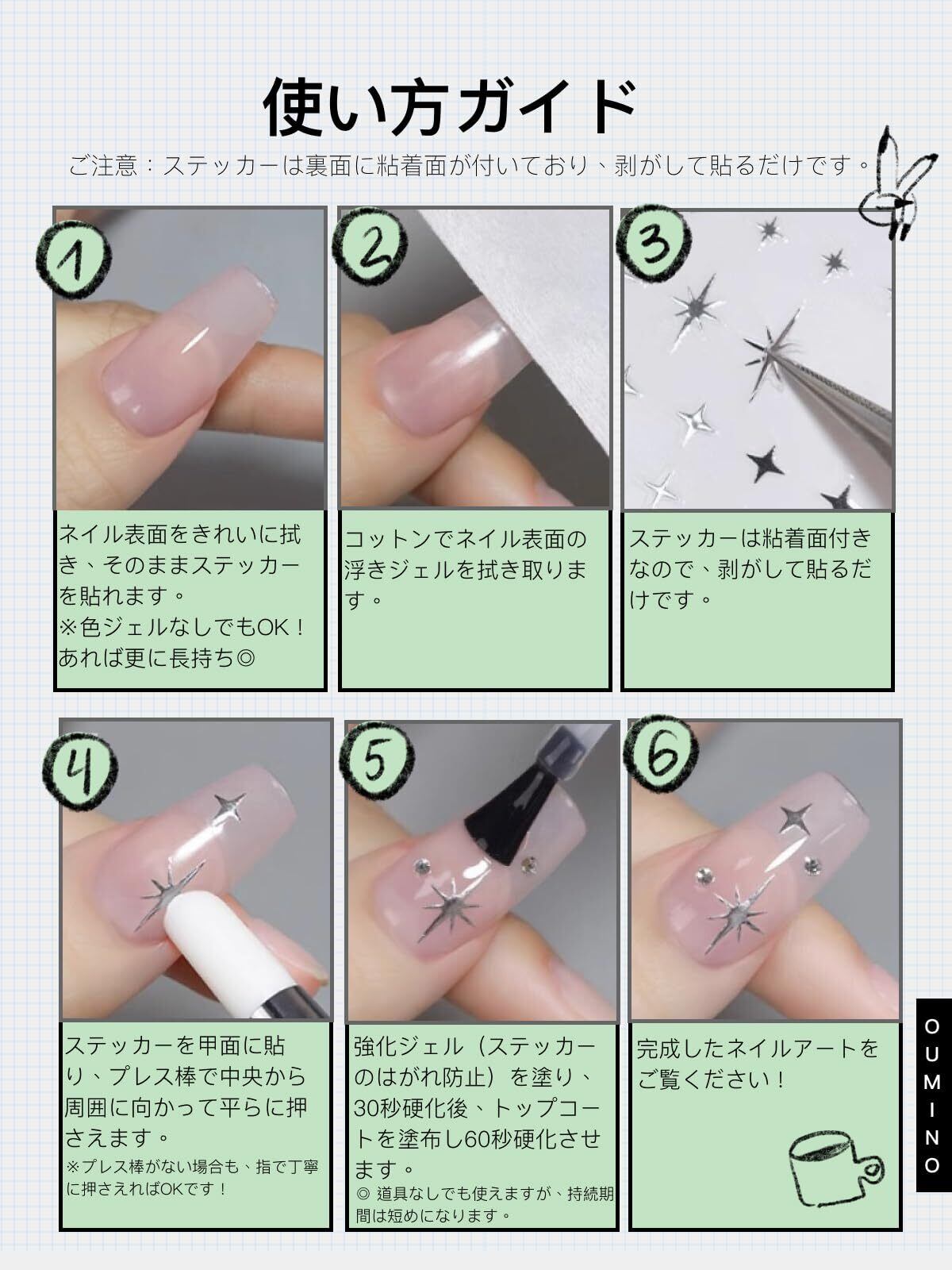 多彩なデザイン:このパッケージには、異なるデザインのネイルシールが入っており、美しいや可愛いパターンが楽しめます。あなたの個性を引き出す完璧なアイテムです。剥がれにくい耐水素材で、光沢感のある銀色が長時間キープ。