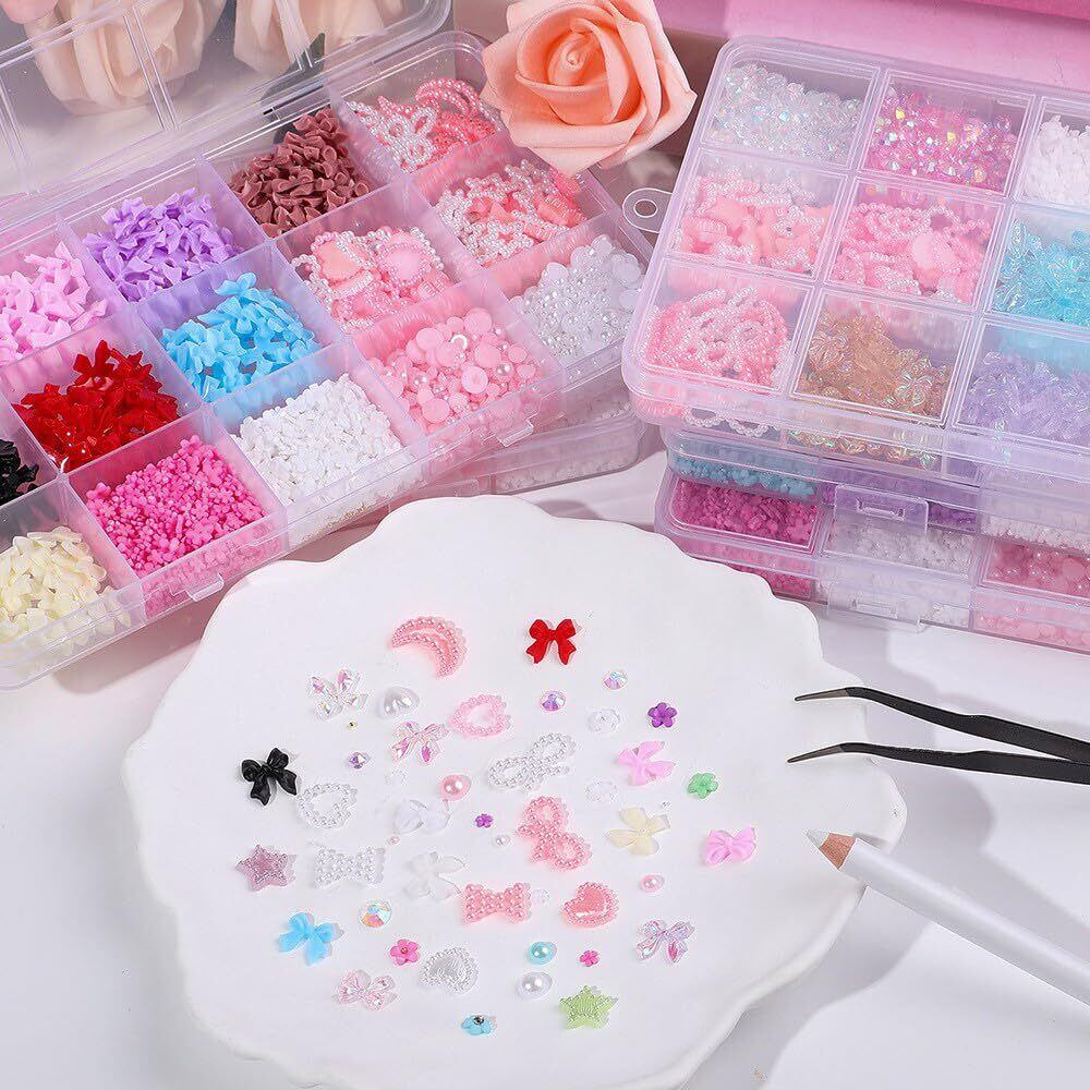 【便利な収納】透明で頑丈なケース入りで、ネイルパーツを種類別に整理でき、取り出しやすく使い勝手抜群。