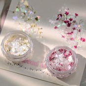 【ネイルパーツ】天然貝殻の薄片とドライフラワー、ラメパウダーがミックスされたセットです。光の角度によって異なる光沢を放ち、ネイルに芸術的な雰囲気とファッション感を加え、指先をより眩しく魅力的にします!