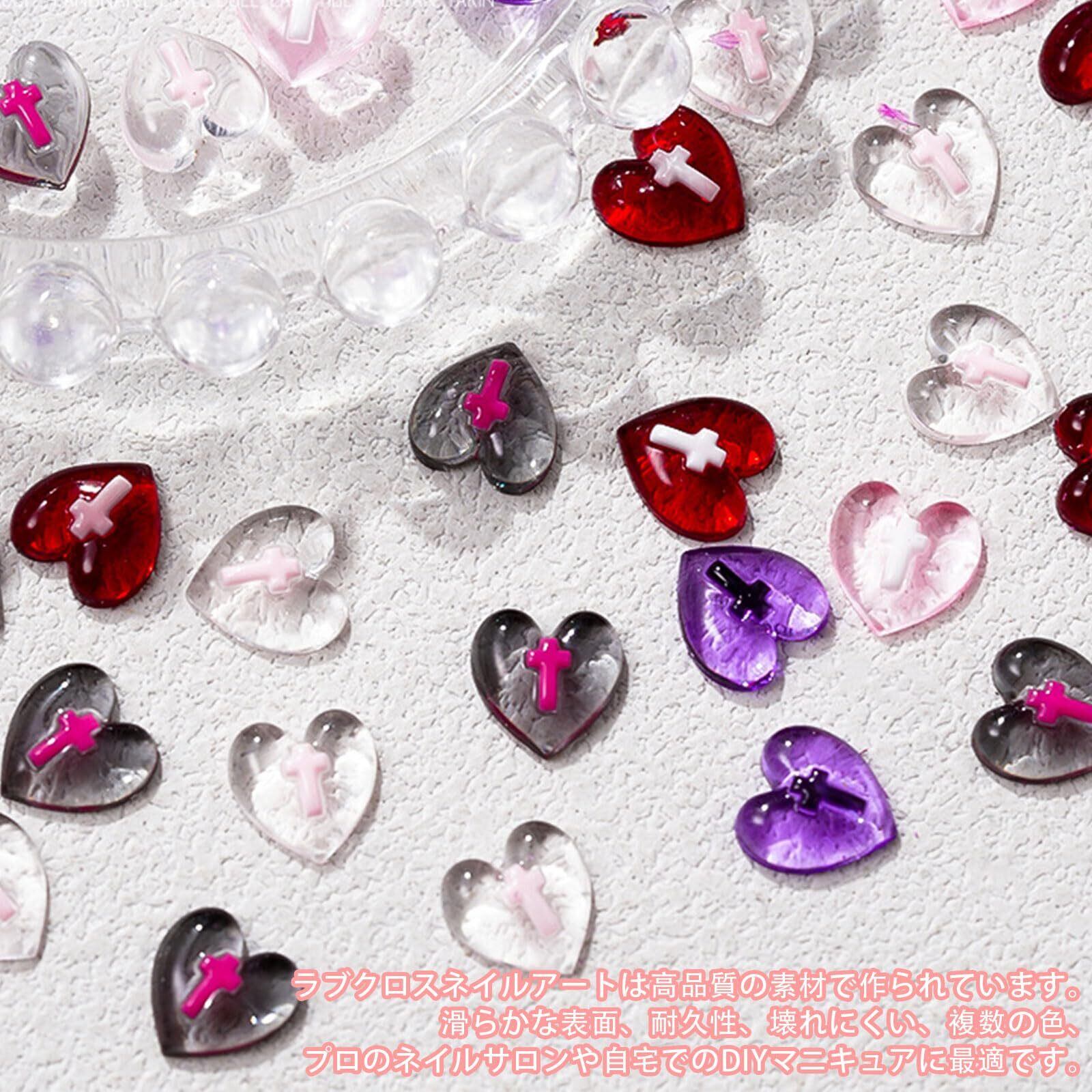 【ネイルパーツ】透け感のあるハートネイルパーツが登場!十字架の装飾が施されたハート型パーツは、ユニークなデザインで、ネイルアートに魅力を加え、女性らしさをより個性的に演出します。 【安全な素材】ネイルパーツは環境にやさしい樹脂素材で作られ、軽量で爪を傷つけず、頑丈で耐久性があり、長時間に使用することができます。 【ネイルアートに】3Dデザインで、ぷっくりして、立体感に溢れています。ネイルのワンポイントとしておしゃれです。天然または人工ネイルに簡単に貼り付けることができます。 【幅広い用途】ネイルデザインだけでなく、小物の装飾、携帯電話ケースの装飾、ボディアートの装飾、手作りの装飾にも適しています。日常生活、誕生日、クリスマス、結婚式、バレンタインなどの場合におすすめ! 【パッケージ】ネイルパーツ約50個セット(ランダム色)。