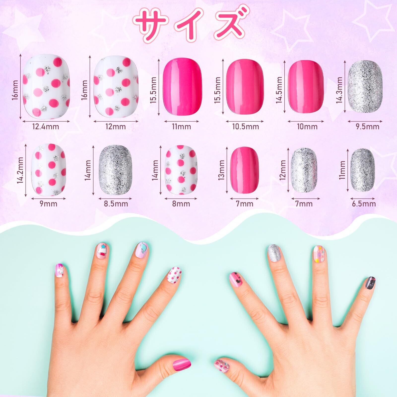 12サイズから選べる:1箱のネイルチップには12種類のサイズが入っているので、お子さまの年齢や爪の大きさに合わせて選べます。