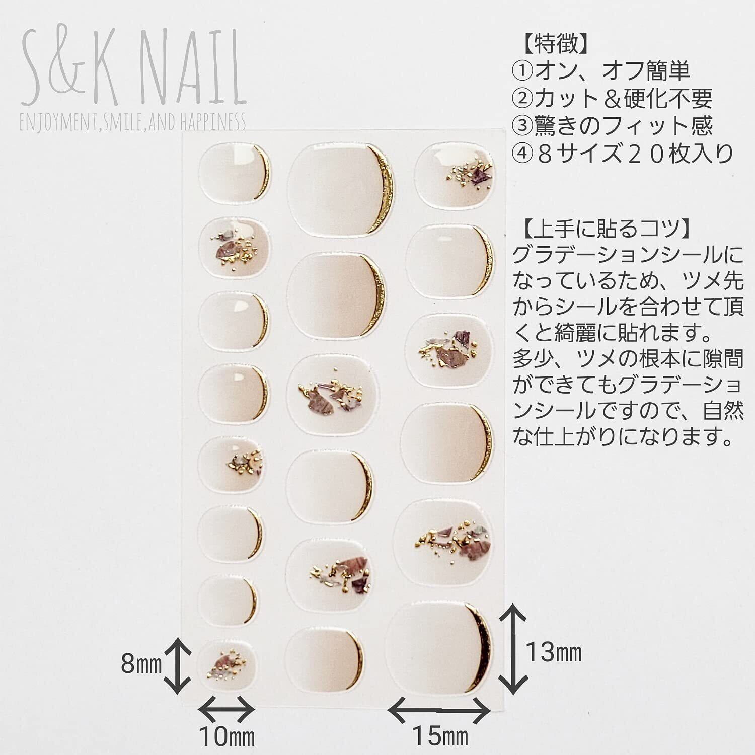S&K NAIL ゴールド フレンチ & ビジュー ネイルシール 貼るだけ 硬化不要 クリア 透明 手 秋 冬 人気 8サイズ20枚入り ハロウィン 日本製