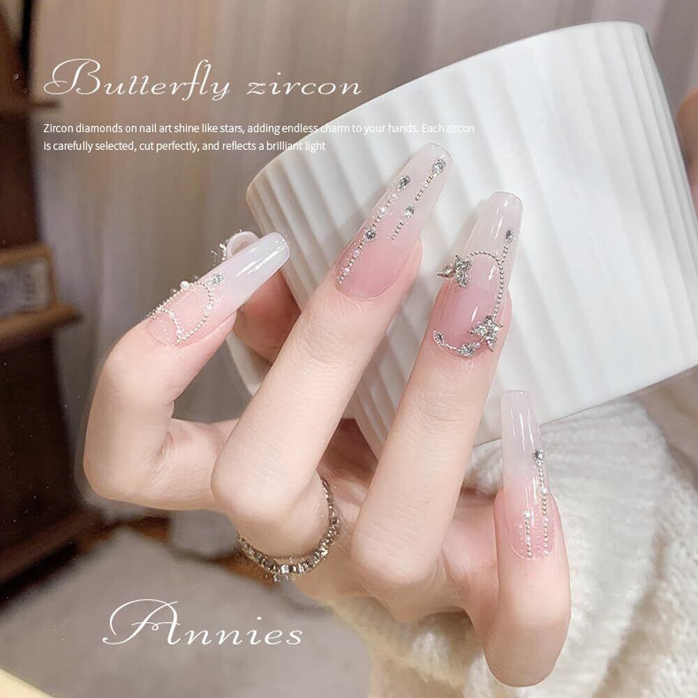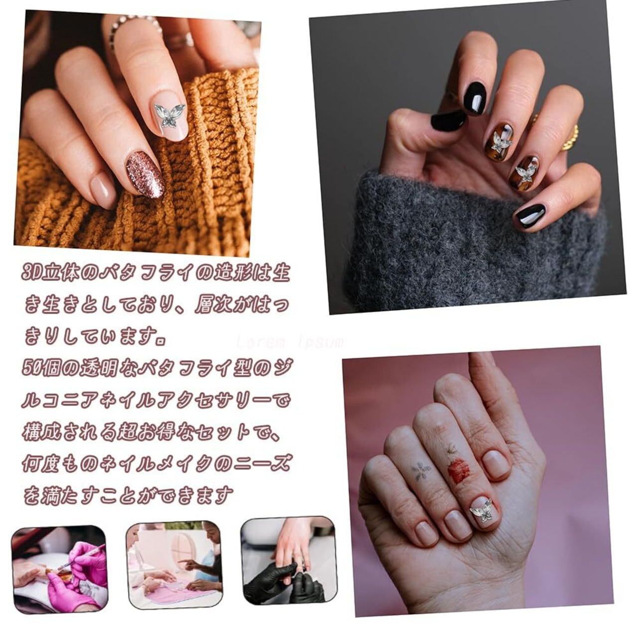 セット内容:50個の透明なバタフライ型のジルコニアネイルアクセサリーで構成される超お得なセットで、何度ものネイルメイクのニーズを満たすことができます。好きなように組み合わせることができ、指先にユニークな魅力を放たせ、簡単に個性的なネイルメイクを実現できます
