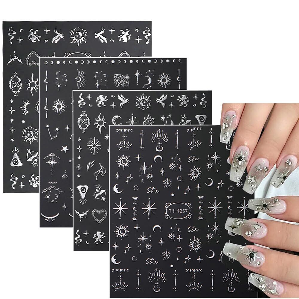 【人気商品】LISMYAKEY ネイルシール 4枚セット シルバー 3D立体感 星 月 太陽 ネイルパーツ シール 貼るだけ おしゃれ ネイルステッカー ジェルネイル ネイルアートシール デコパーツお洒落 人気 [並行輸入品] | Lumisfera