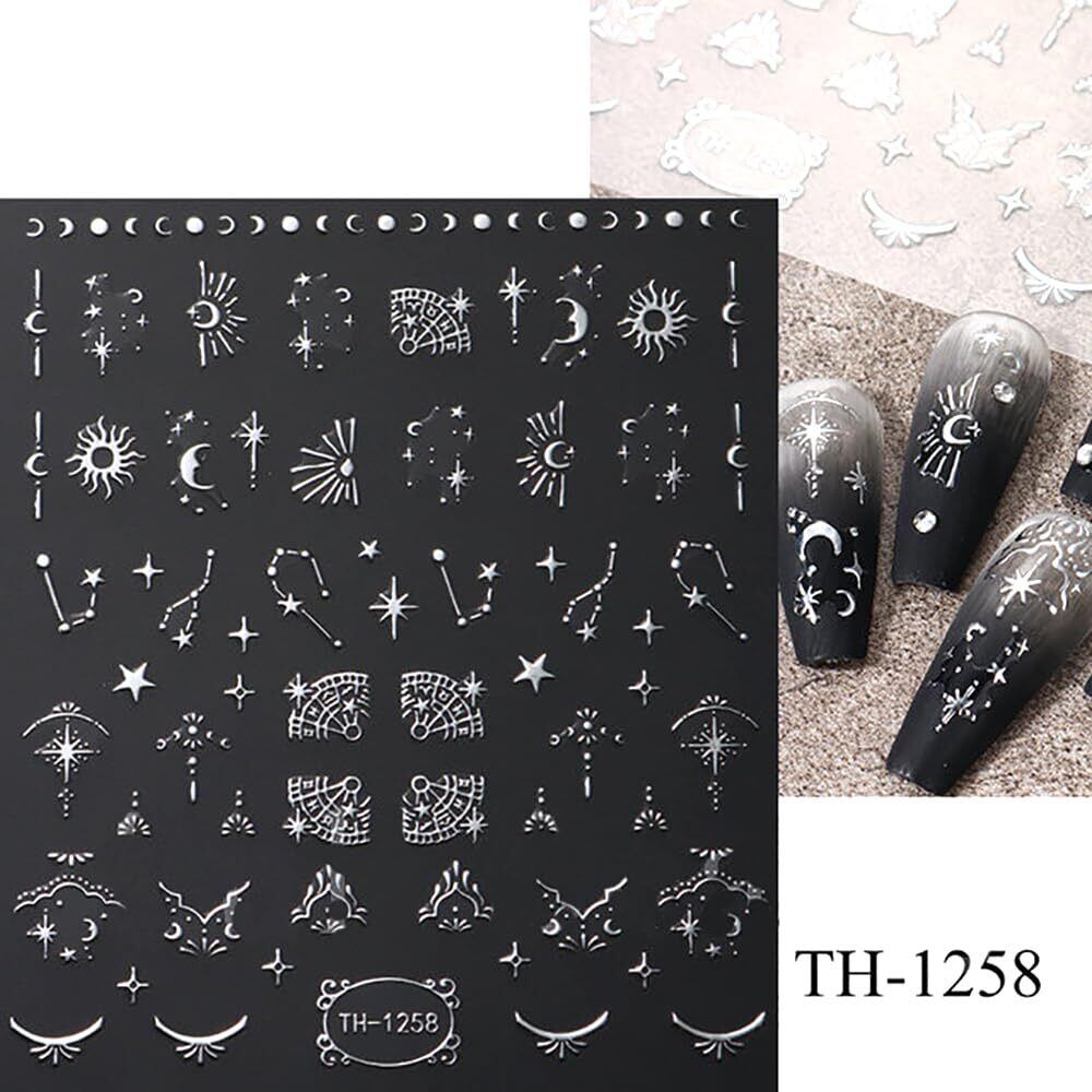 LISMYAKEY ネイルシール 4枚セット シルバー 3D立体感 星 月 太陽 ネイルパーツ シール 貼るだけ おしゃれ ネイルステッカー ジェルネイル ネイルアートシール デコパーツお洒落 人気 [並行輸入品]