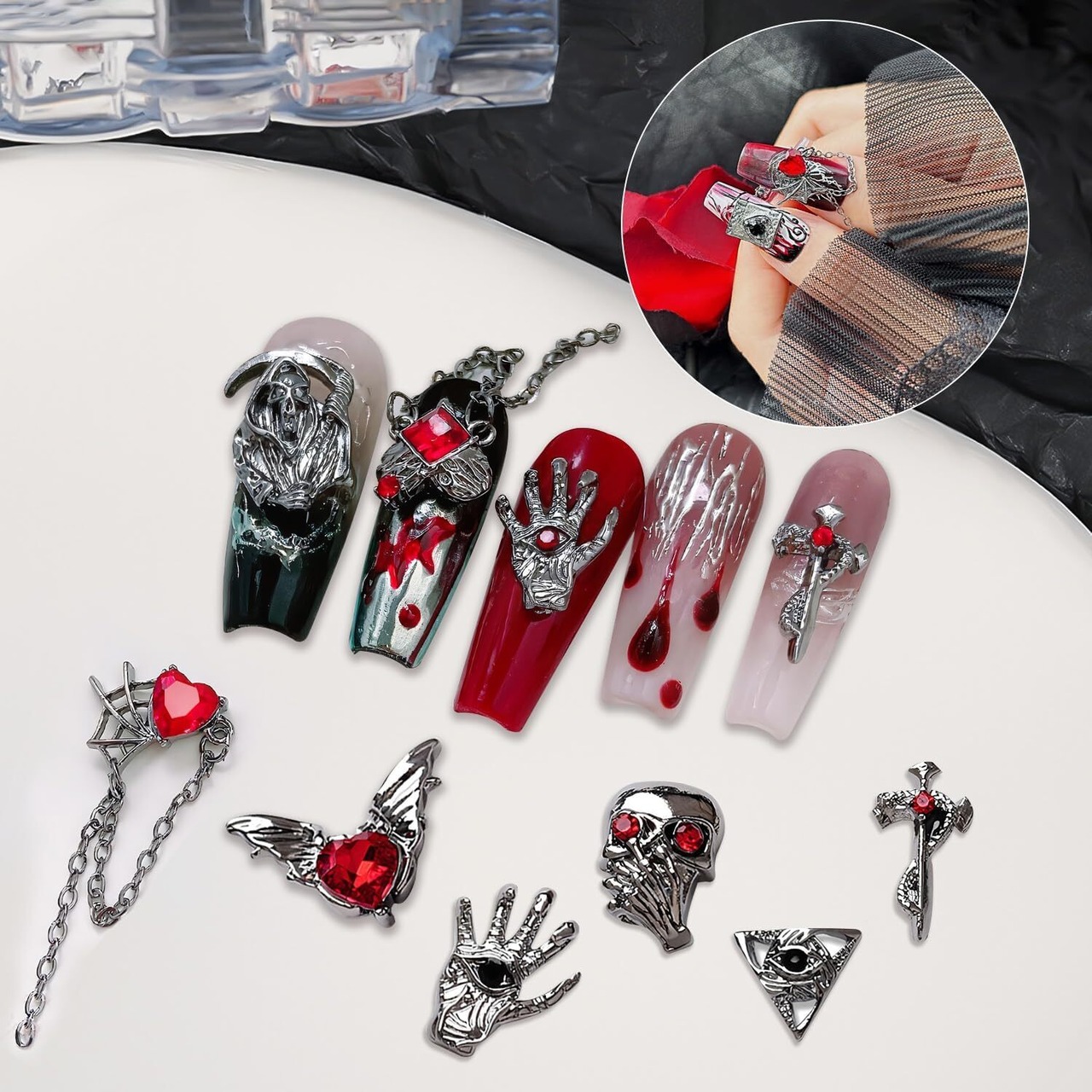 【幅広い用途】パンクやゴシック風も言うまでもなく、ハロウィンにとてもふさわしいです。日常的に他のスタイルに挑戦したい人にもおすすめです。ネイルパーツだけでなく、レジン、スマートフォンケースやアクセサリー、クラフト装飾などにも使用可能です