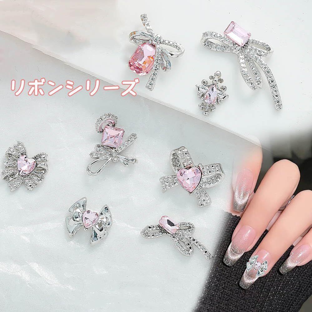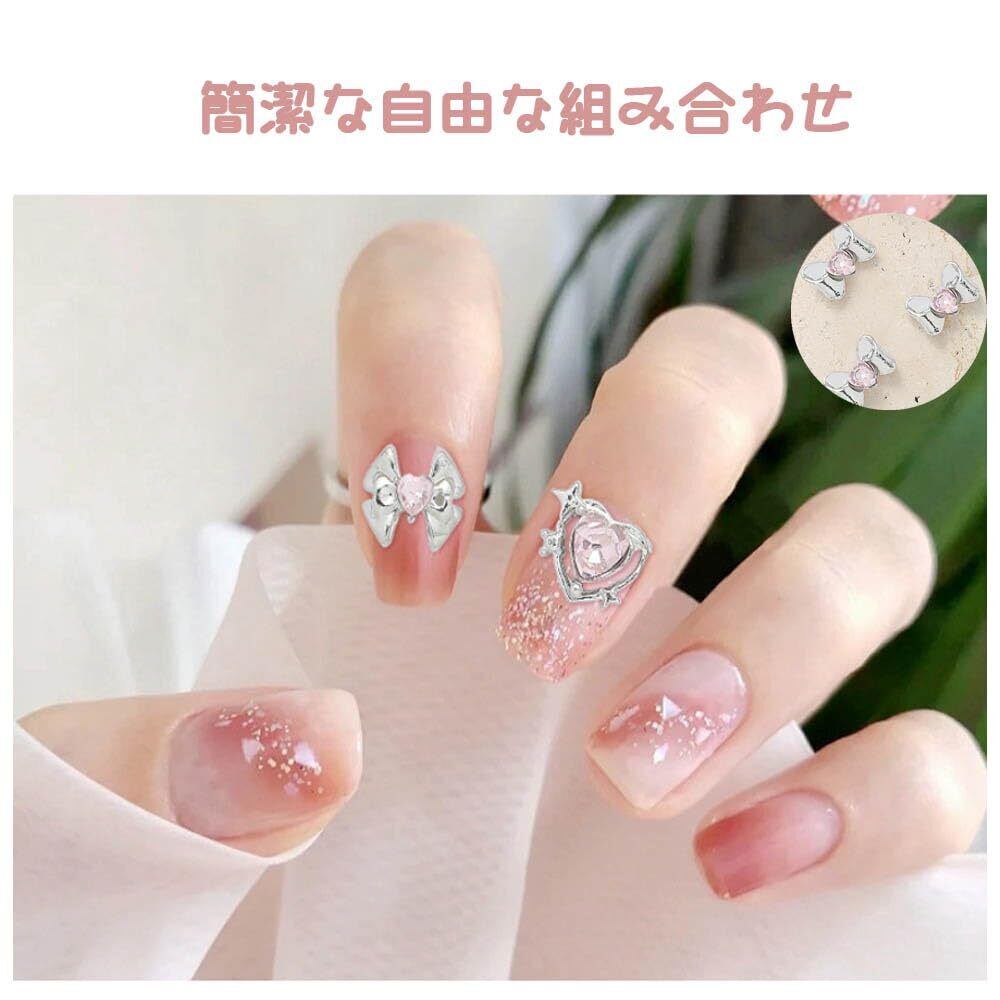 ZJYCLY ネイルパーツ リボン ストーン キラキラ ラインストーン 20個入り(ピンク)大きめ ハート 蝶結び ネイルアート DIY 手芸