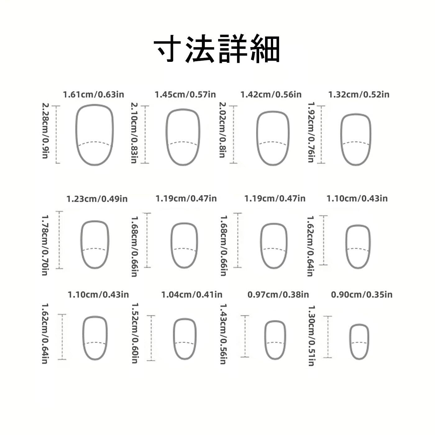 【内容】ネイルチップ24枚、付け替え用両面テープ、 爪やすり1個がセットになっています。