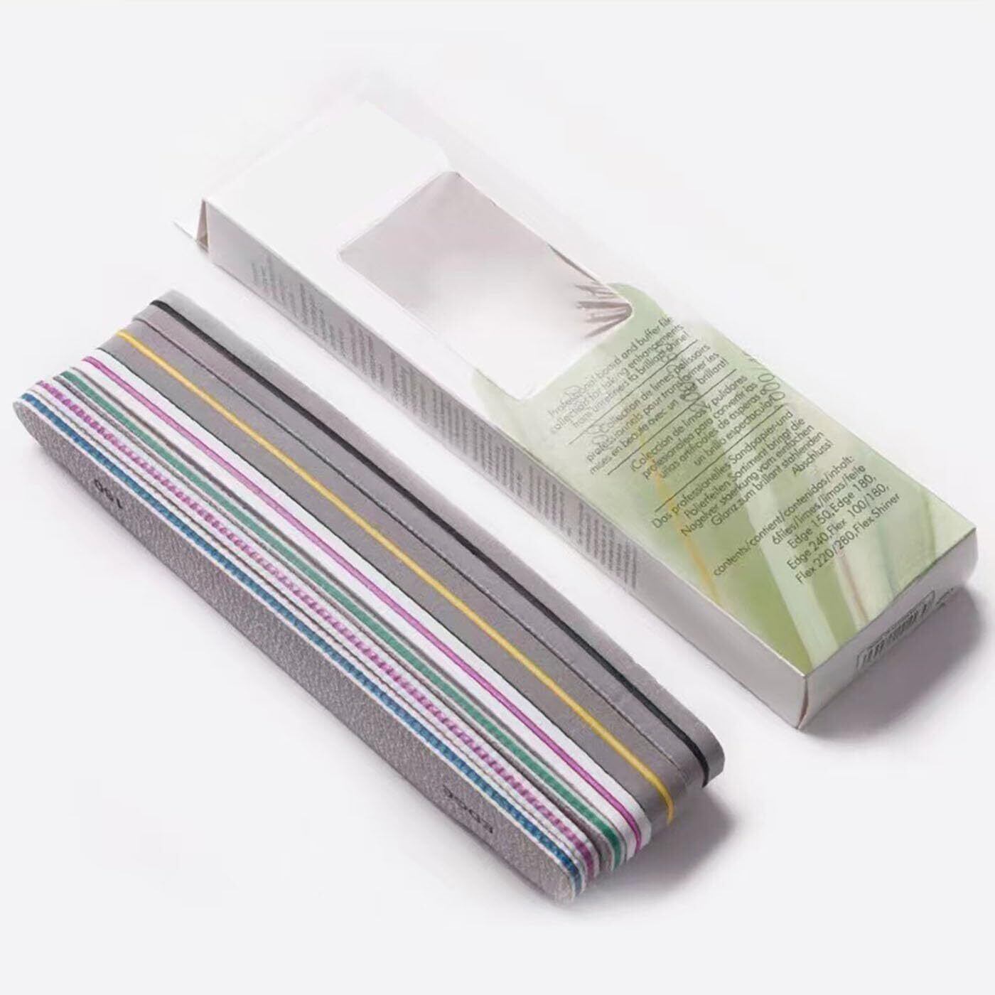 1. 充実したセット内容 セット内容には、ゼブラファイル(#150、#180、#240)、スポンジバッファー(100/180、220/280)、シャイナー(1000/4000)が含まれており、ネイルケアに必要なツールがすべて揃っています。さまざまな粗さのファイルとバッファーが揃っているので、ネイルの状態に合わせて使い分けることができます。