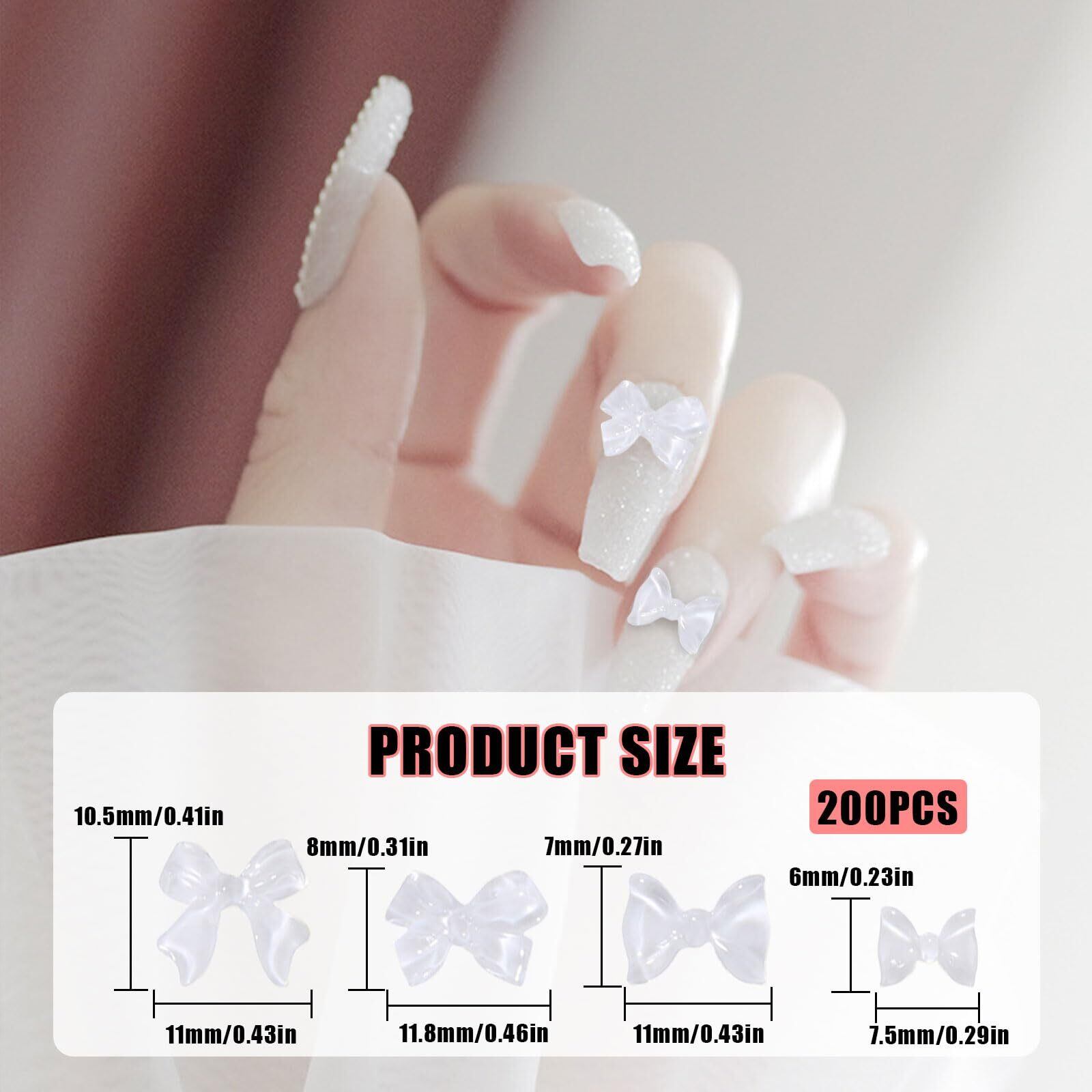 ネイルパーツ リボン 200個セット 蝶結び 蝶々 ネイルデコパーツ リボン ネイルパーツ 樹脂 透明 3D 立体 ネイルアートパーツ 可愛い ネイル用 ジュエリーパーツ ネイル飾り DIY ハンドメイド (クリア)