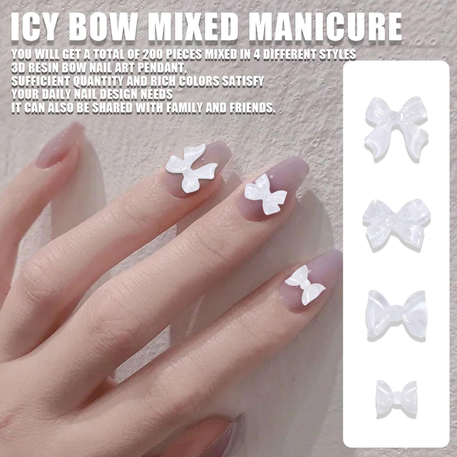 【かわいいデザイン】ネイルパーツ リボンは今最も人気のあるネイルアートです。 立体的な白いアイシーリボンパーツは、かわいくてユニークなだけでなく、立体感もあり、女性に人気のネイルパーツです。