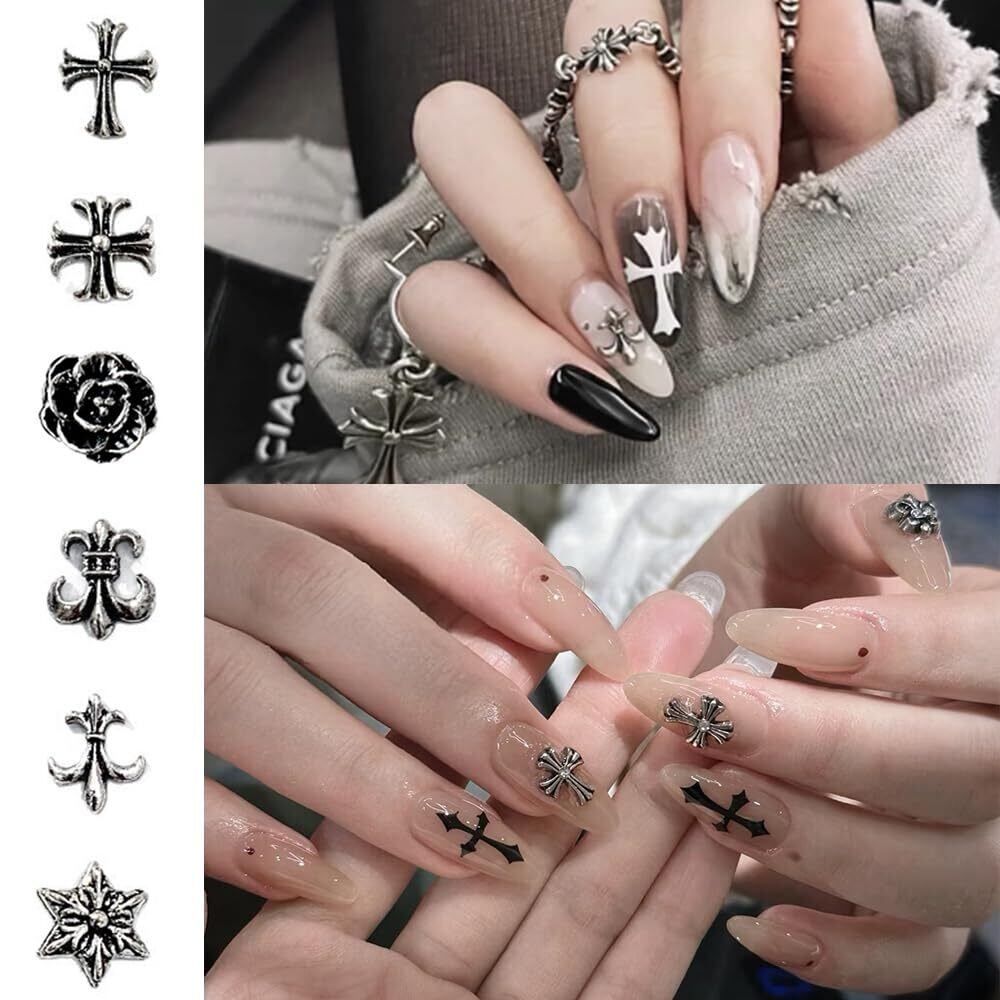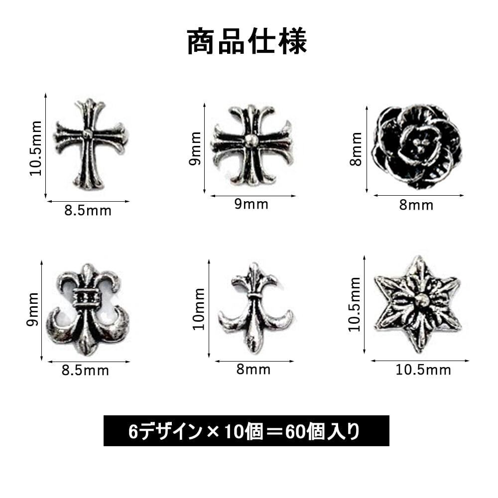 CHANJIF ネイルパーツ 60個入り リベット装飾部品ビンテージ 金属部品 3D 合金の リベット 十字架 パンク ネイルデザイン用品 軽量で贅沢なスタイル DIY 手作り アクセサリー