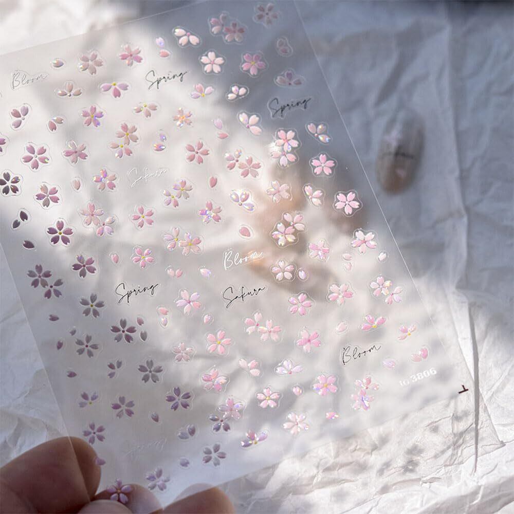 2.【カラフルな効果】いくつかの桜の花はカラフルな光沢があり、光に照らされて輝き、あなたのマニキュアをより人目を引くようにします。