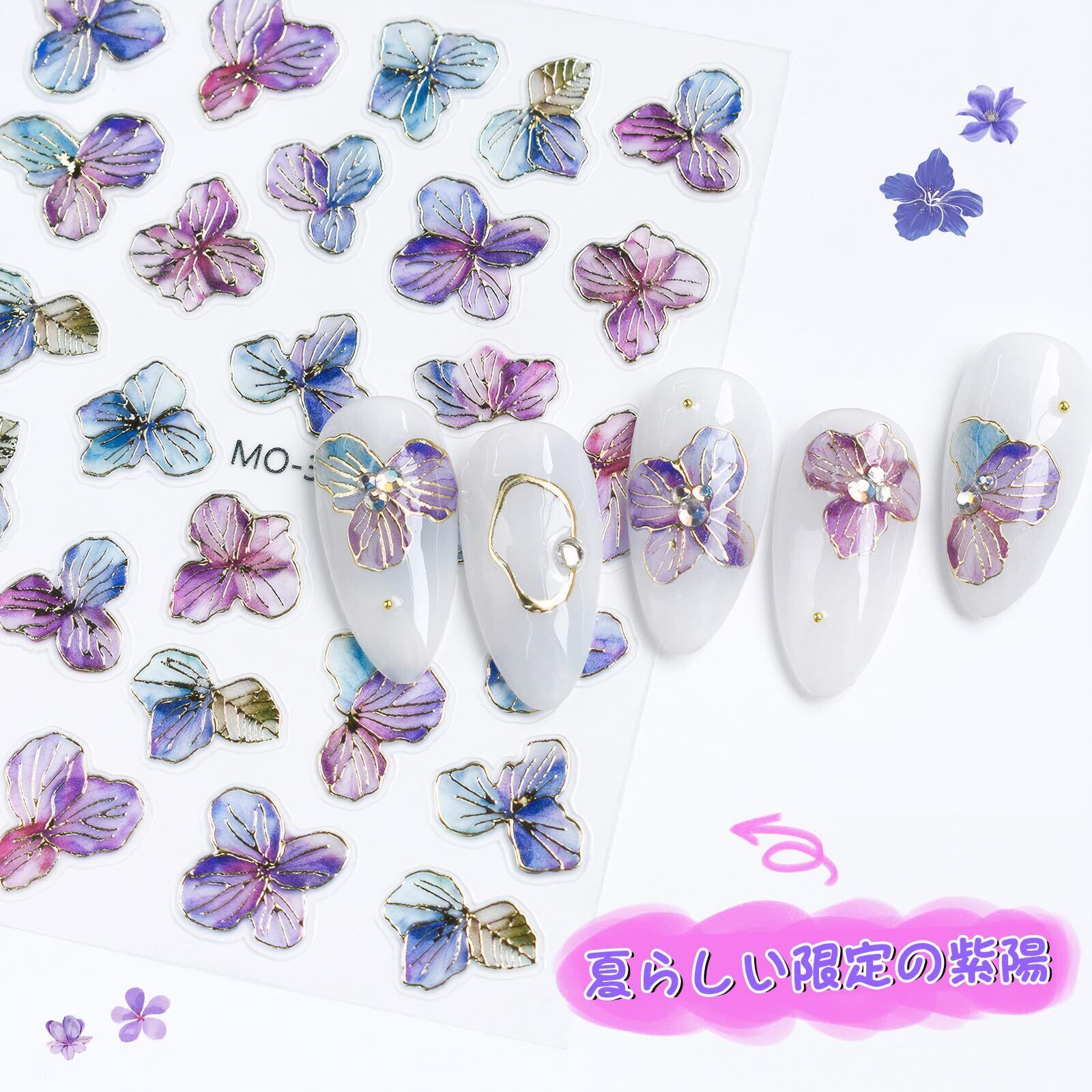 Sucodver ネイルシール 紫陽花 花 アジサイ 花びら ネイル用シール フラワー 箔押し キラキラ 梅雨 夏 2枚セット