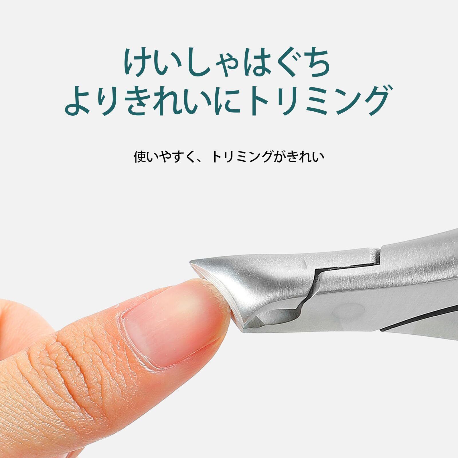 【使いやすい】刃先は、厚めの爪でも切りやすいよう、大きく広がる設計にしました。硬い足の爪のお手入れに適しています。刃全体に爪をかけるのではなく、少しずつカットすることでより綺麗な仕上がりを実感できます。