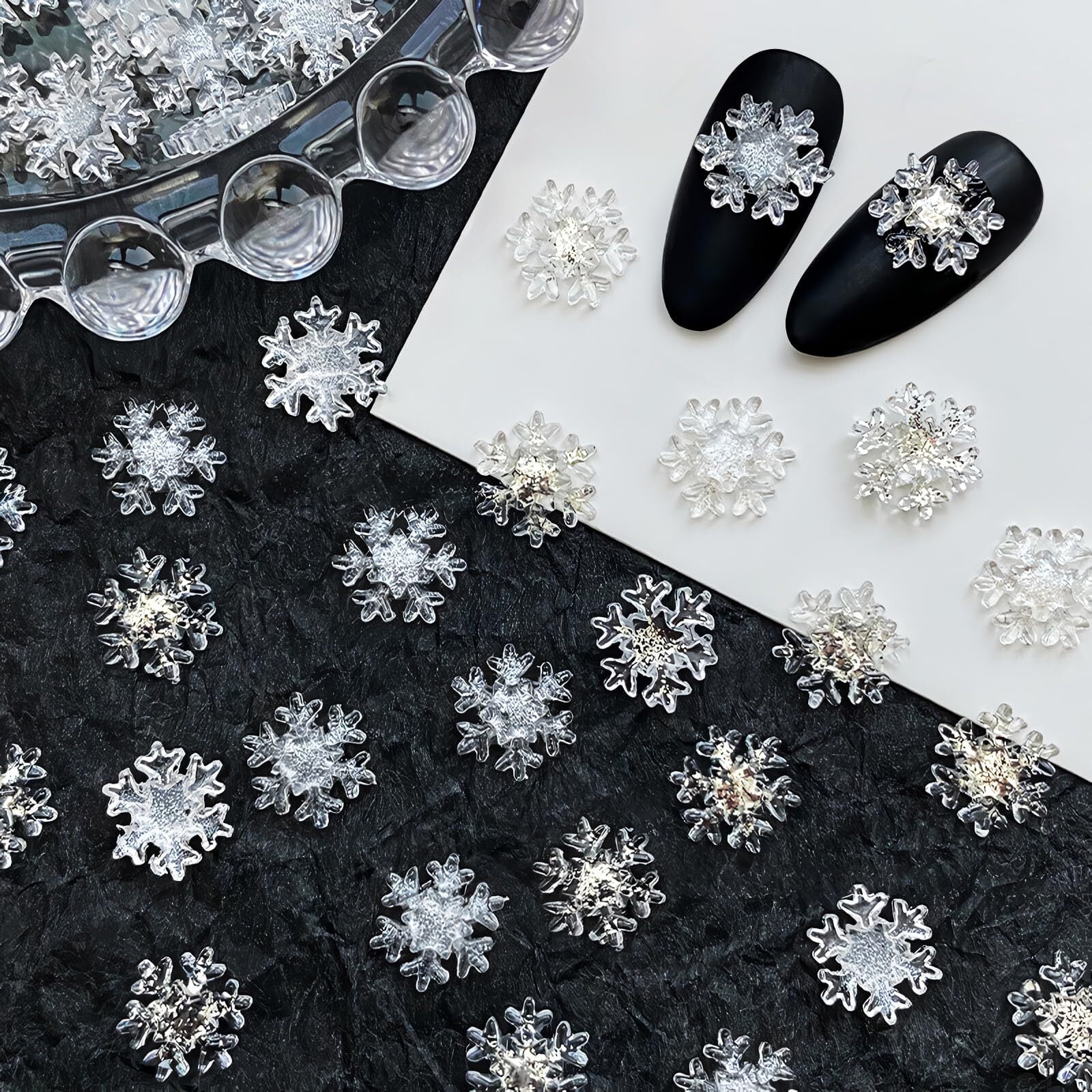 【雪の結晶】繊細な作りとリアルに見える雪の結晶の形で特徴づけられるレジン製ダイヤモンドは、冬の指先飾りに最適です